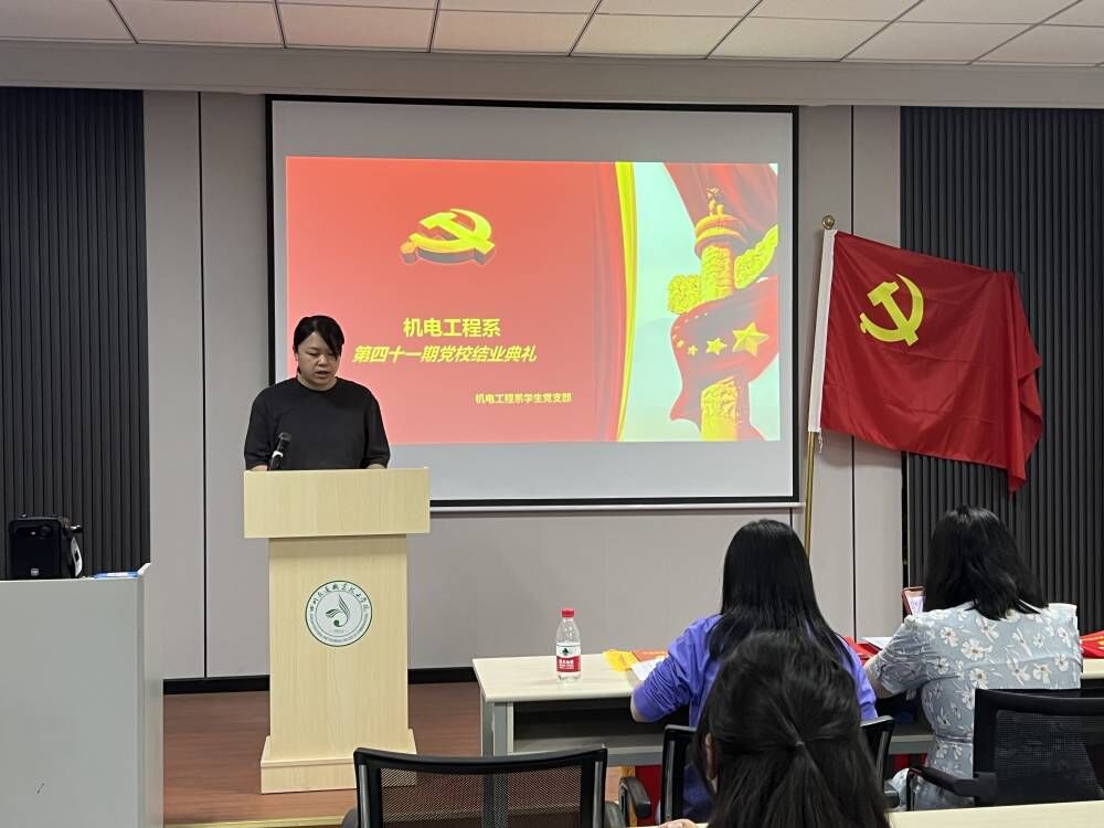 4月10日至6月6日,机电工程系分党校举办了第41期入党积极分子党课培训。经过严格的培训和考核,共71名学员于顺利结业,其中7名学员获得优秀学员的称号。