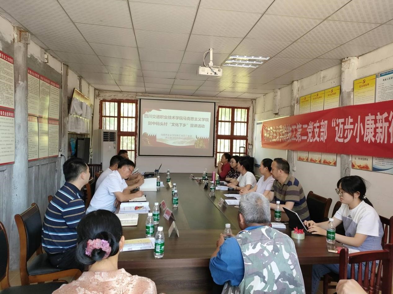 为扎实开展基层党组织联建共建工作,进一步提升党组织凝聚力、战斗力、创造力,以高质量党建引领促进共同发展。9月13日,四川交通职业技术学院马院教工第二党支部前往通江县涪阳镇中码头村开展支部共建暨“文化下乡”宣讲活动,马院党总支书记徐文同志参加了此次活动。