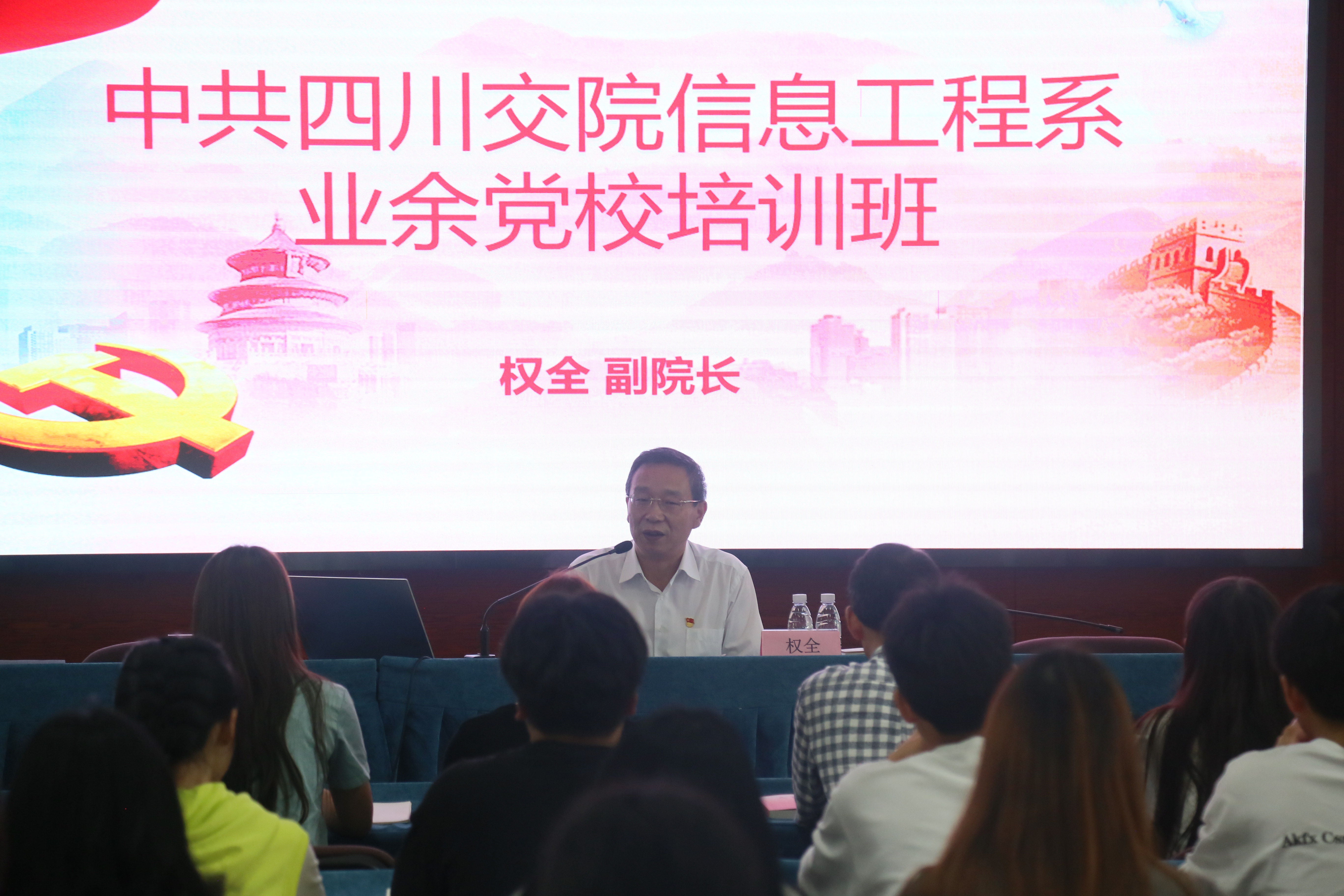 为加强信息系入党积极分子的党性修养,提高他们的综合素质。9月20日,在明德楼A301举行中共四川交通职业技术学院委员会业余党校信息工程系分校第四十期培训正式开班暨第一次党课,学院党委委员、副院长权全、信息工程系党总支副书记常洁、信息工程系学生支部书记唐国强出席了开班仪式,开班仪式由信息工程系学生党支部书记主持。