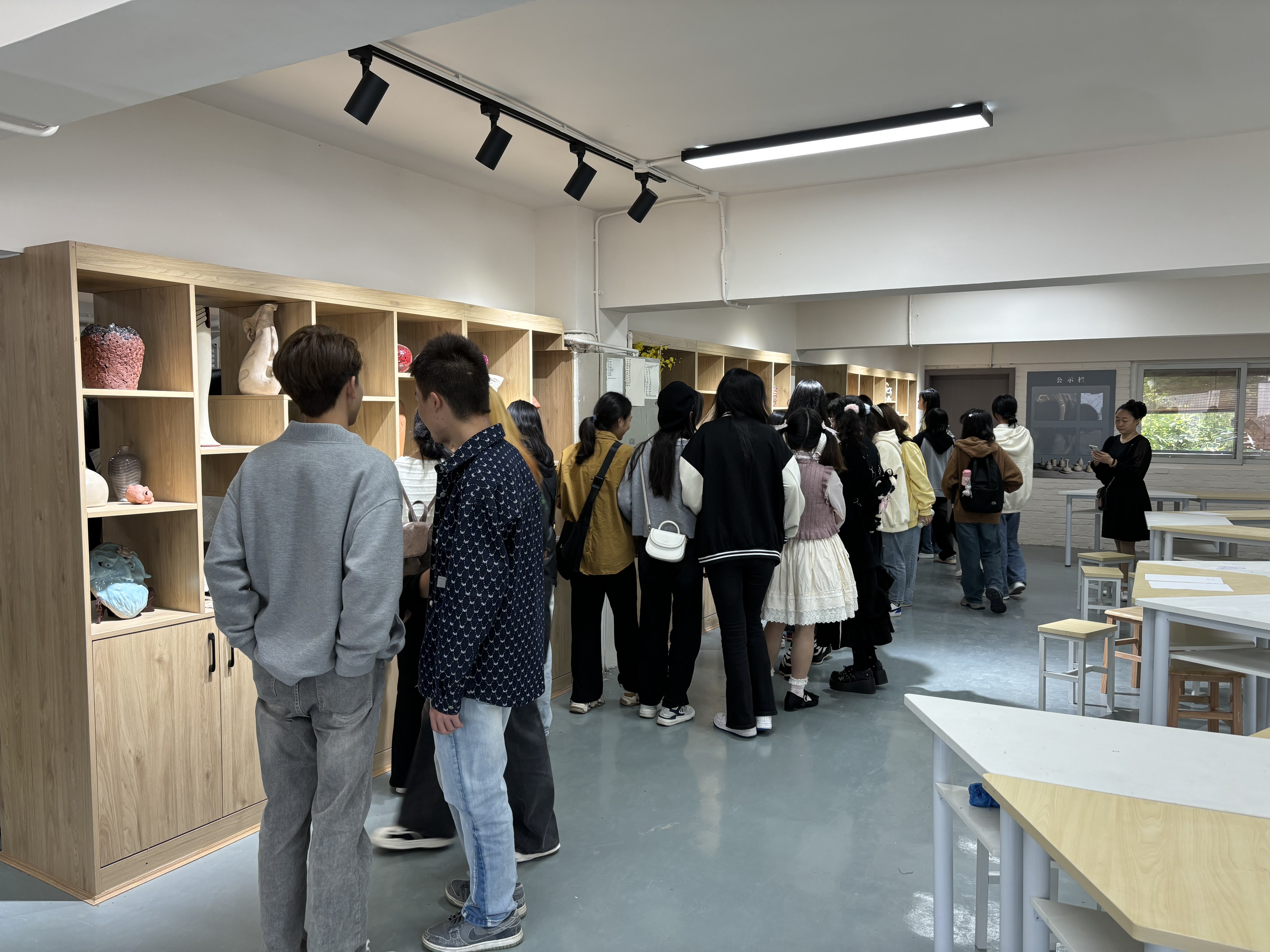 最后,在辅导员和各教研室主任的带领下,同学们参观了艺术与设计系各实训室、技能大师工作室及技能竞赛办公室。