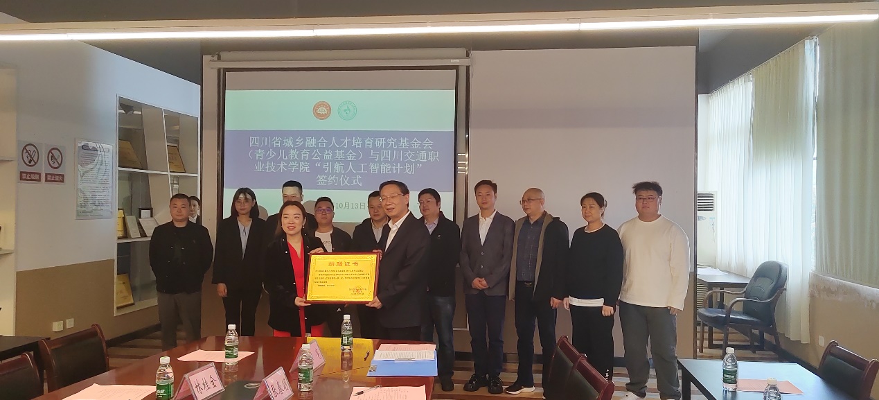 10月13日,学院思行楼407会议室举行了四川交通职业技术学院艺术与设计系“引航计划人工智能”实验室捐赠活动,学院党委委员副院长权全、四川省城乡融合人才培育研究基金会和青少儿教育公益基金执行部长王悦语、诚学长青公益服务中心主任沈德芳、成都交潼西智科技有限公司总经理林桂全、四川过加佳工业设计有限公司总经理基金会服务商李锐、学院教务处处长方文、学生工作部部长张春明、创新创业学院副院长邓洪娟及艺术与设计系相关人员参加了本次捐赠活动。本次活动由艺术与设计系谭亮主任主持。