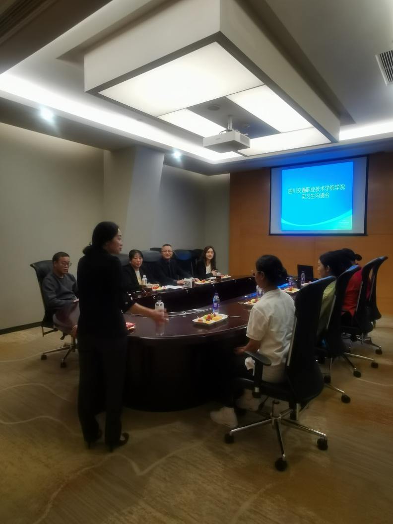 10月13日上午,航运工程系党总支副书记郭镭镭、实习指导老师文雅、辅导员鲁鹏、学生干事刘怡一行四人赴成都高新豪生大酒店看望2024届国际邮轮乘务管理专业实习生。