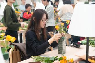 为深入开展学院教职工文化活动,促进学院文化活动健康发展,舒缓教职工工作压力,增加教职工之间的交流与友谊,学院工会成立教职工花艺小组并于10月26日下午,在图书馆一楼开展插花活动,内容包括插花、花束制作、绿植种植护理、鲜花搭配养护等,小组成员还进行了心得分享。