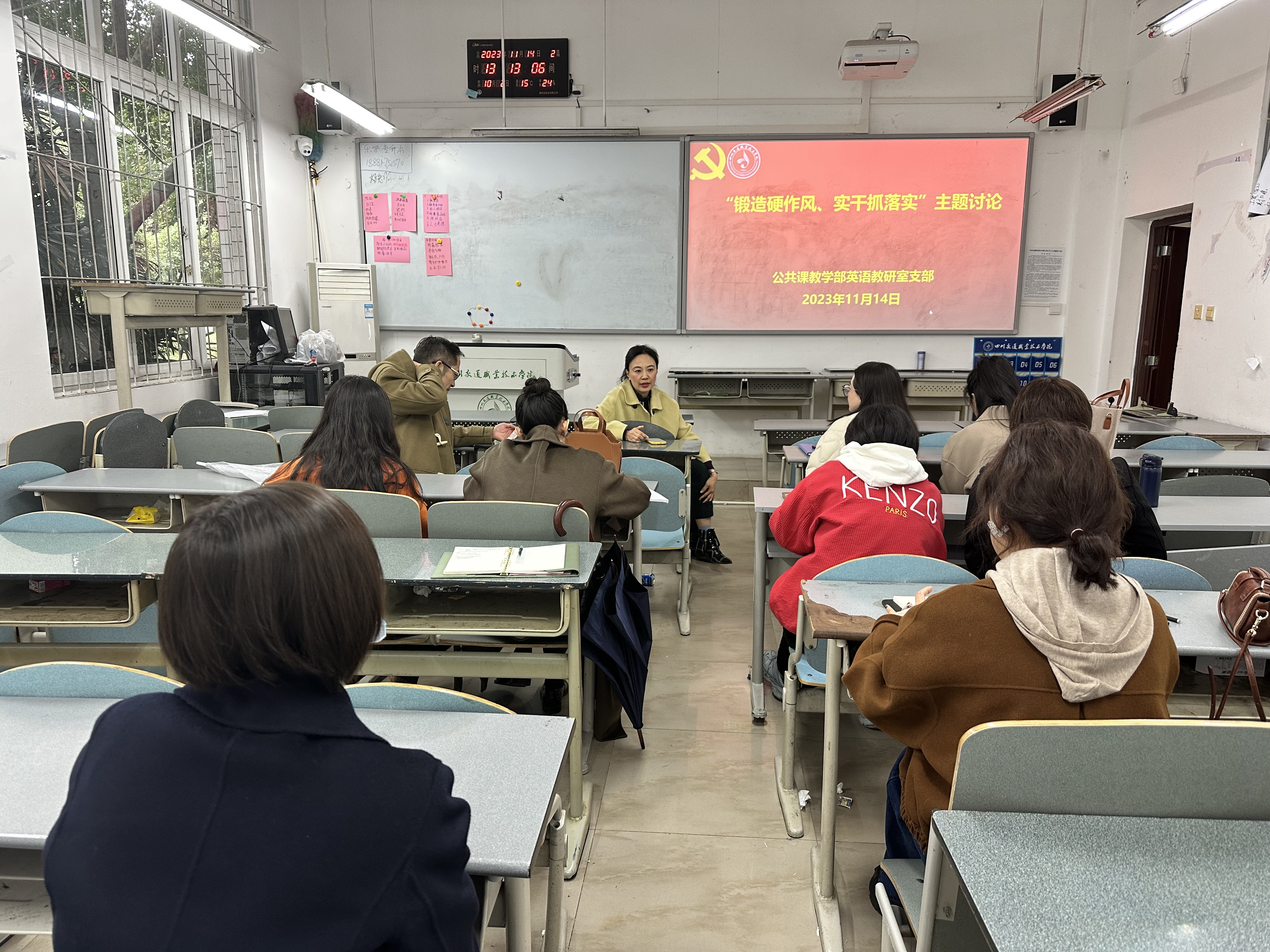 11月14日,根据学院主题教育工作要求,英语教研室党支部召开了“锻造硬作风、实干抓落实”的专题研讨会。党总支副书记、支部书记带头,支部党员逐一剖析了自身在思想、学习、工作、纪律、生活方面存在的问题,梳理出了党员同志中存在的躺平思想、浮于表面、重形式轻内容、职业发展瓶颈等作风顽疾和工作短板。通过思想的碰撞和经验的交流,党员同志更加明晰了自身的不足和差距,从优秀同志、先进案例中得到了克服顽疾,突破事业发展瓶颈的启示。