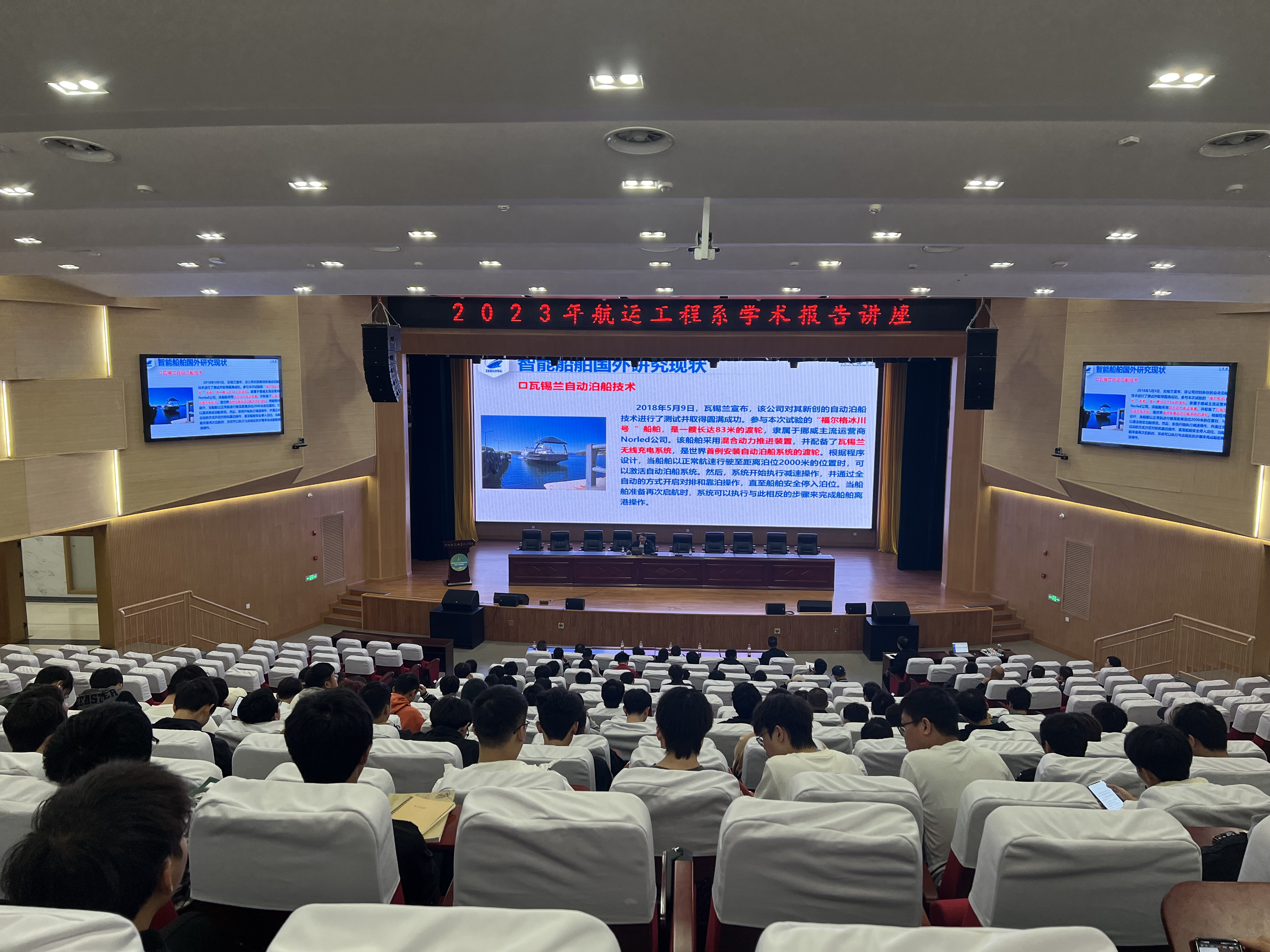 2023年11月08日,航运工程系徐生明主任做主持,特请大连海事大学尹勇教授,给我们老师和学生进行了一场主题为“无人驾驶船舶技术发展现状及研究进展”的讲座,系部全体教职员工和航运工程系大二和大三全体学生聆听讲座,本次讲座在厚学楼学术报告厅进行,并同时开启了会议直播,方便未能到现场的老师和学生也能共同进行学习。