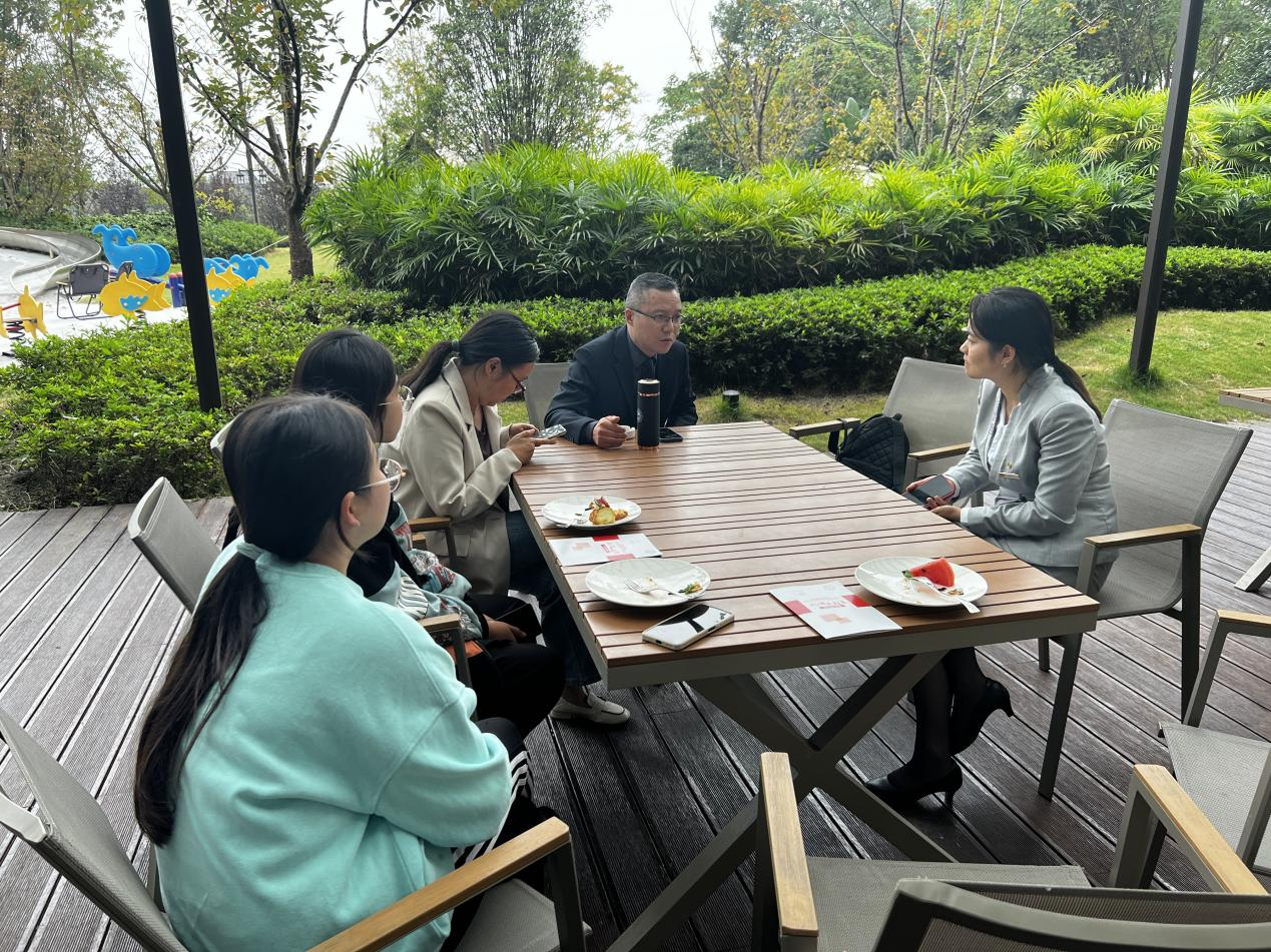 座谈会结束后,系走访小组与酒店人事部周经理深入交谈,感受到酒店方对实习生管理的高度重视。周经理对几位实习生近5个月的工作情况进行了细致的反馈,并对她们的实习表现表示肯定。