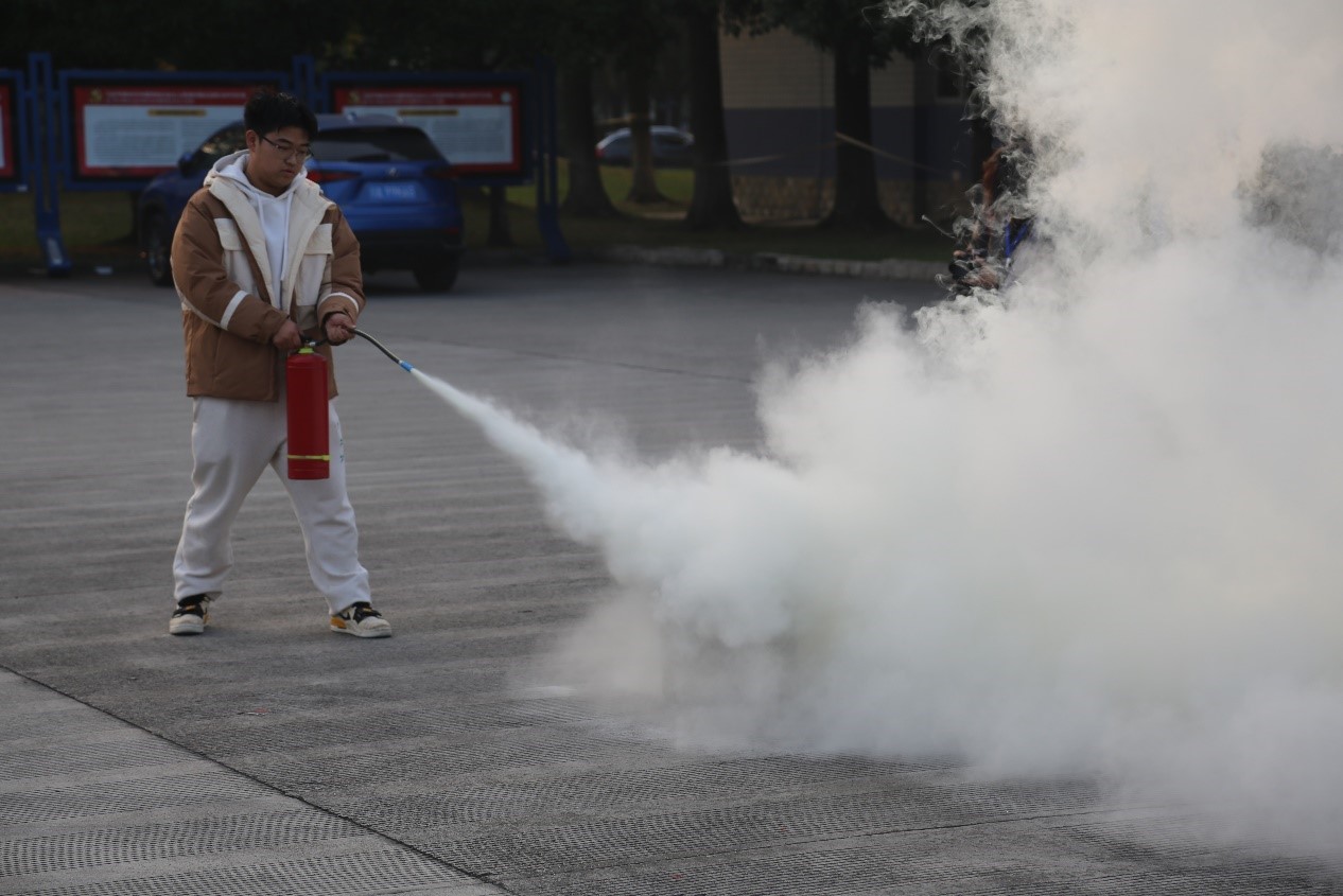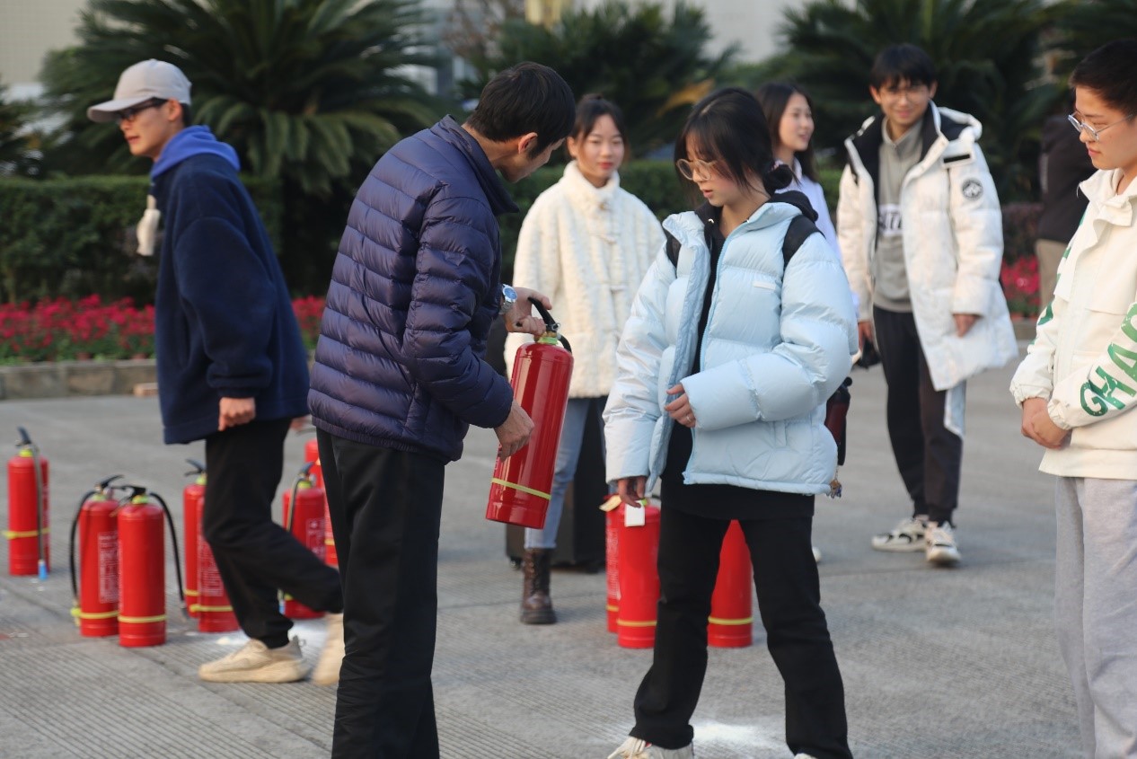 活动开始前,系党总支副书记对本次安全应急演练的意义和目的作了介绍,并提了相关要求,同学们严格按照预定流程顺利完成了演练,沉浸式地体验了火灾发生后从二楼至一楼安全逃生的全过程。演练结束后,保卫处老师现场为同学们讲解灭火知识以及灭火器的使用方法,同学们在老师的指导下尝试了如何使用灭火器。