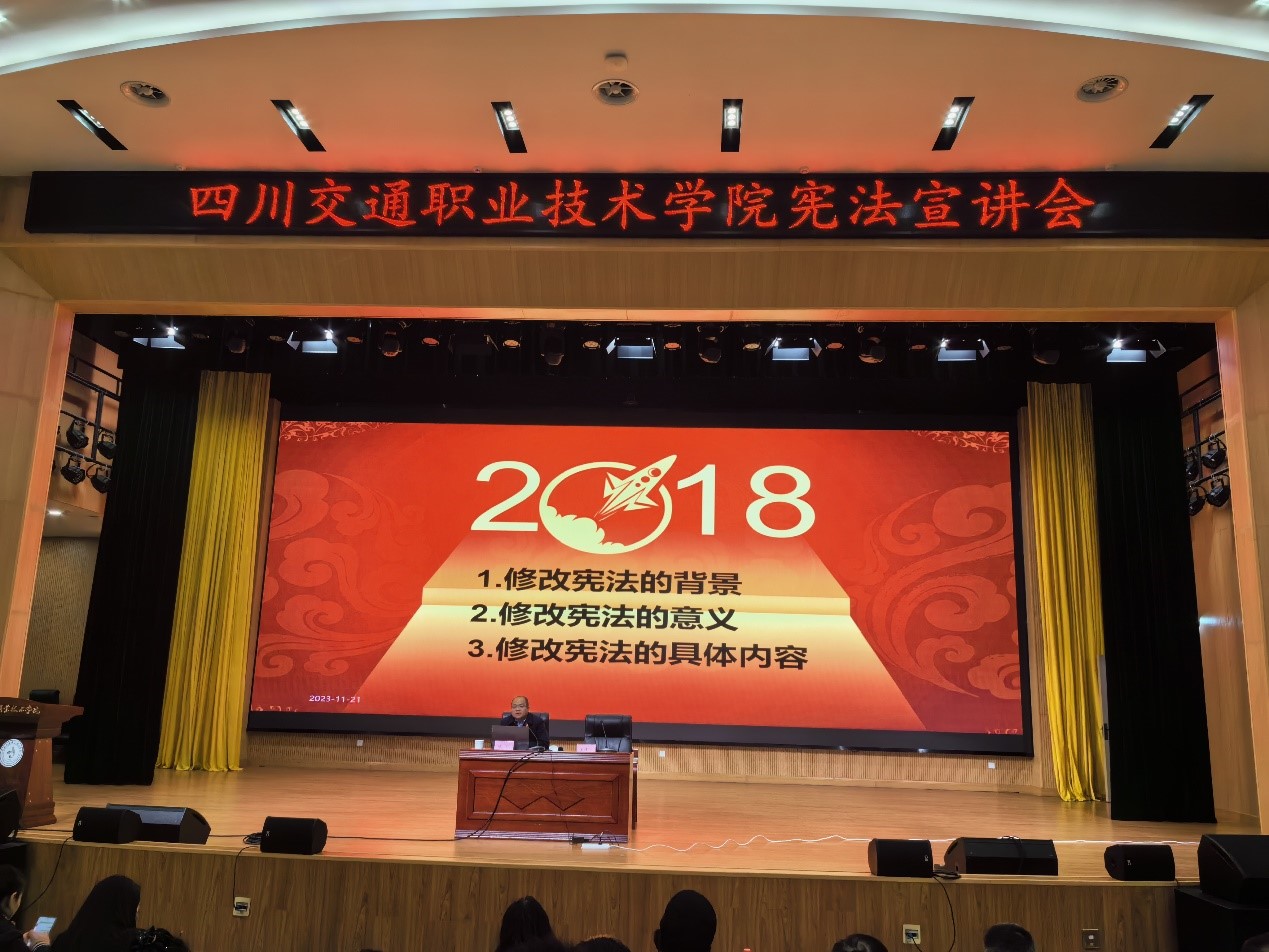 为扎实推进主题教育活动,弘扬宪法精神,进一步提高全院师生尊法学法守法用法意识,11月22日上午,学院宣传统战部在厚学楼报告厅举办的宪法宣讲会。此次宣讲会讲座,是由徐文工作室特邀的四川师范大学马克思主义学院院长、陈驰教授做的主题为《解读中华人民共和国宪法修正案》的讲座。讲座由学院党委副书记李红主持,学院各系领导,各系教师和同学以及马院全体教师参加了这次讲座。