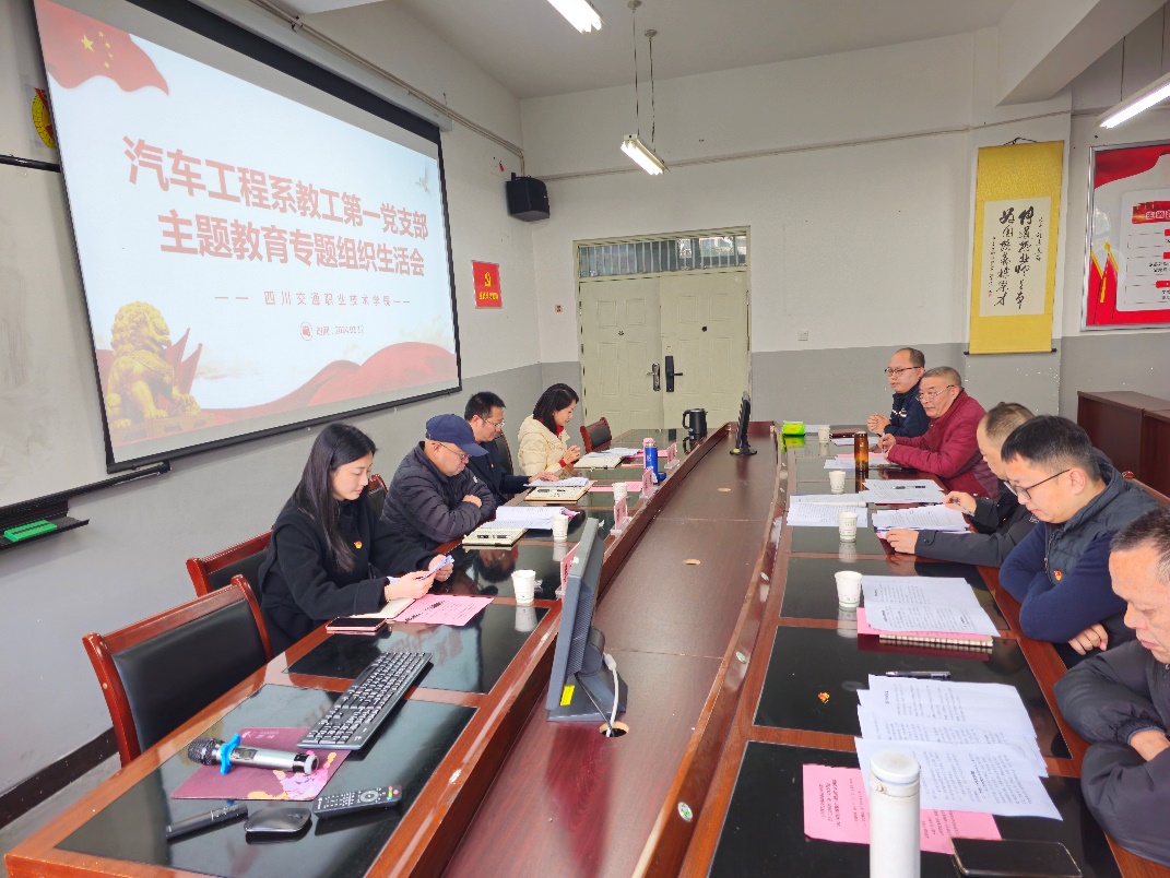 1月12日,汽车工程系教工第一党支部在践行楼A316会议室召开2023年度主题教育专题组织生活会。省委第十二巡回督导组梁刚同志列席,学院党委委员、副院长袁杰到会指导。
