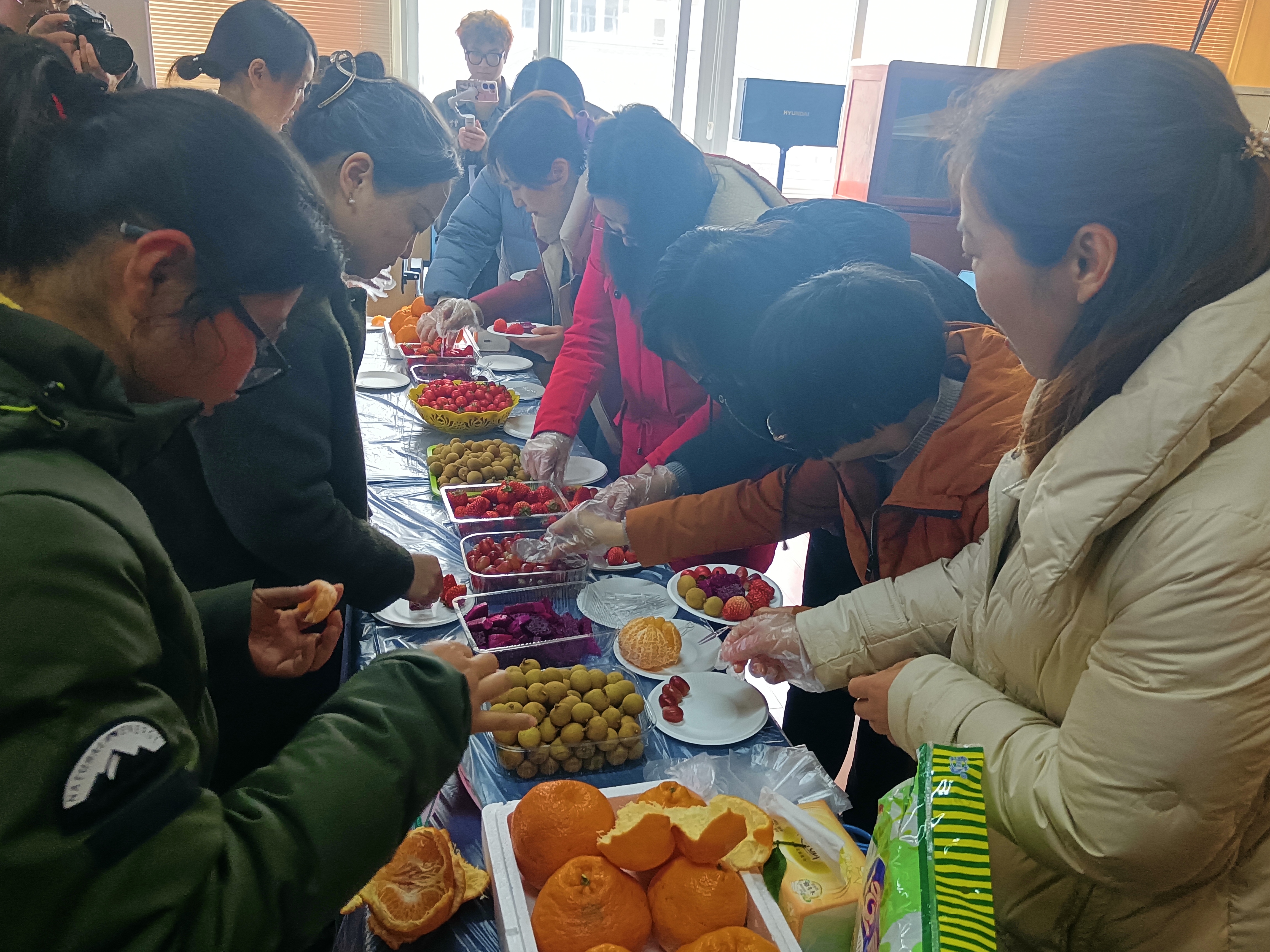 此次系列活动还进行了技能大比拼:插花折纸、水果拼盘、岩石鉴定等,女职工在欢声笑语中探讨手工技艺,大家边学边练,一支支花朵逐渐成型,让人感受到花草枝叶间的优雅与美丽。