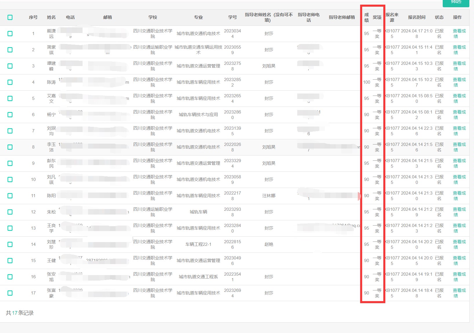 此次心理健康知识竞赛,轨道交通工程系共有187人参赛,获奖人数129人,其中一等奖17人,二等奖38人,三等奖35人和优胜奖39人。以下是一等奖获奖名单: