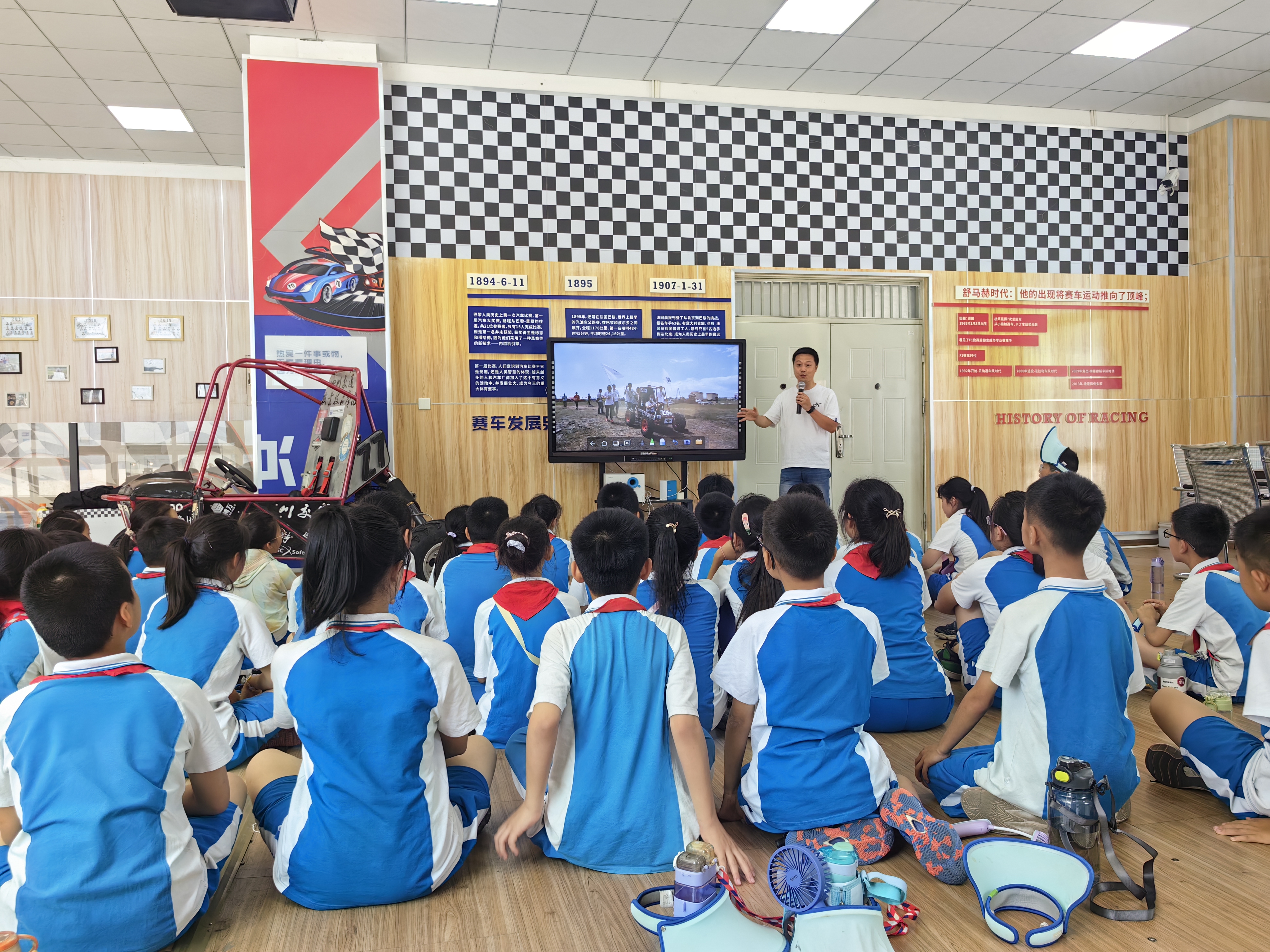 5月25日下午,成都市温江区实验小学五年级12班的46名同学在老师的带领下,来学院赛车科普基地开展科普研学活动。