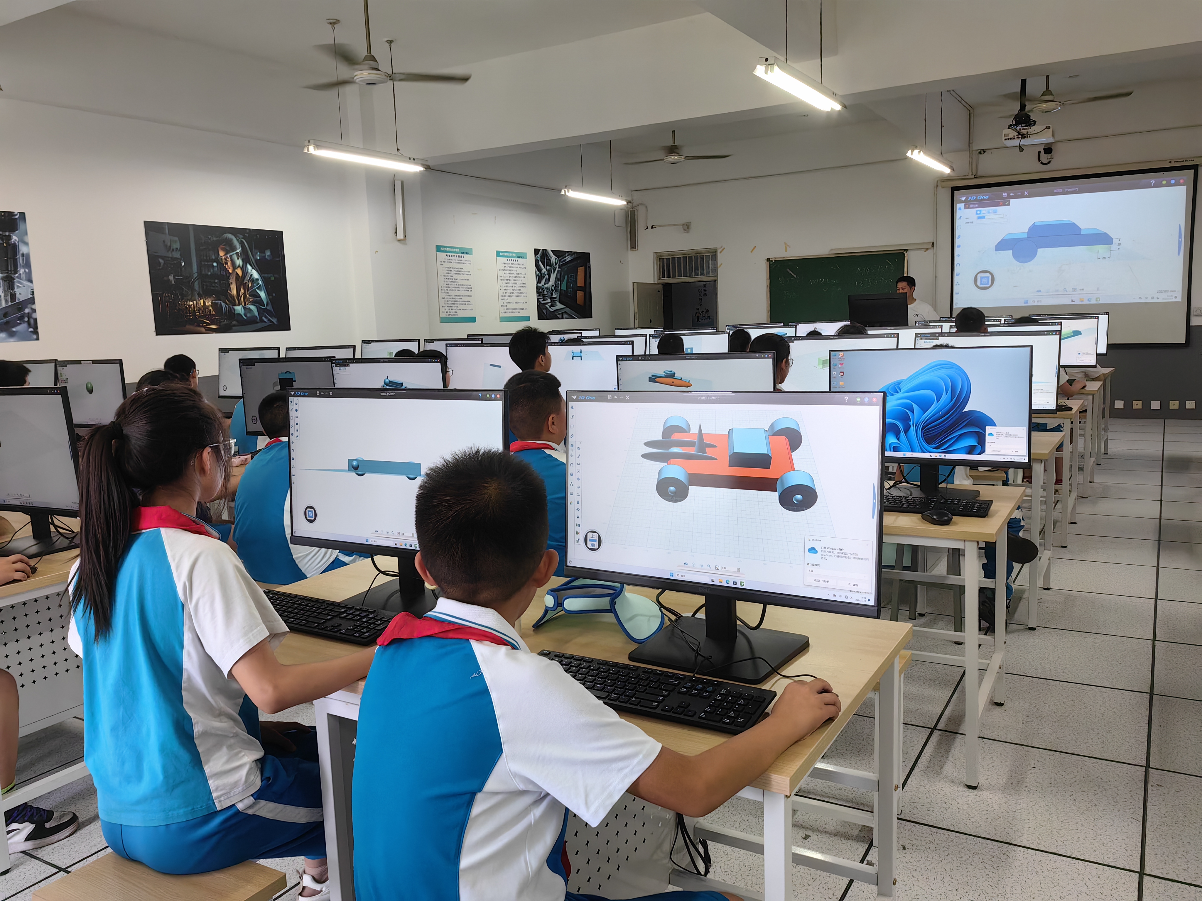 本次研学活动包含三项内容,即3D打印设计体验课、赛车科普小讲堂和模拟赛事体验课。在3D打印设计体验课上,主讲教师郭旭峰为同学们介绍了3D打印在赛车设计中的应用,演示了设计软件的操作过程,启发同学们充分发挥想象设计赛车模型。在本次课中,同学们设计出的一个个有趣又富有科技感的赛车模型。