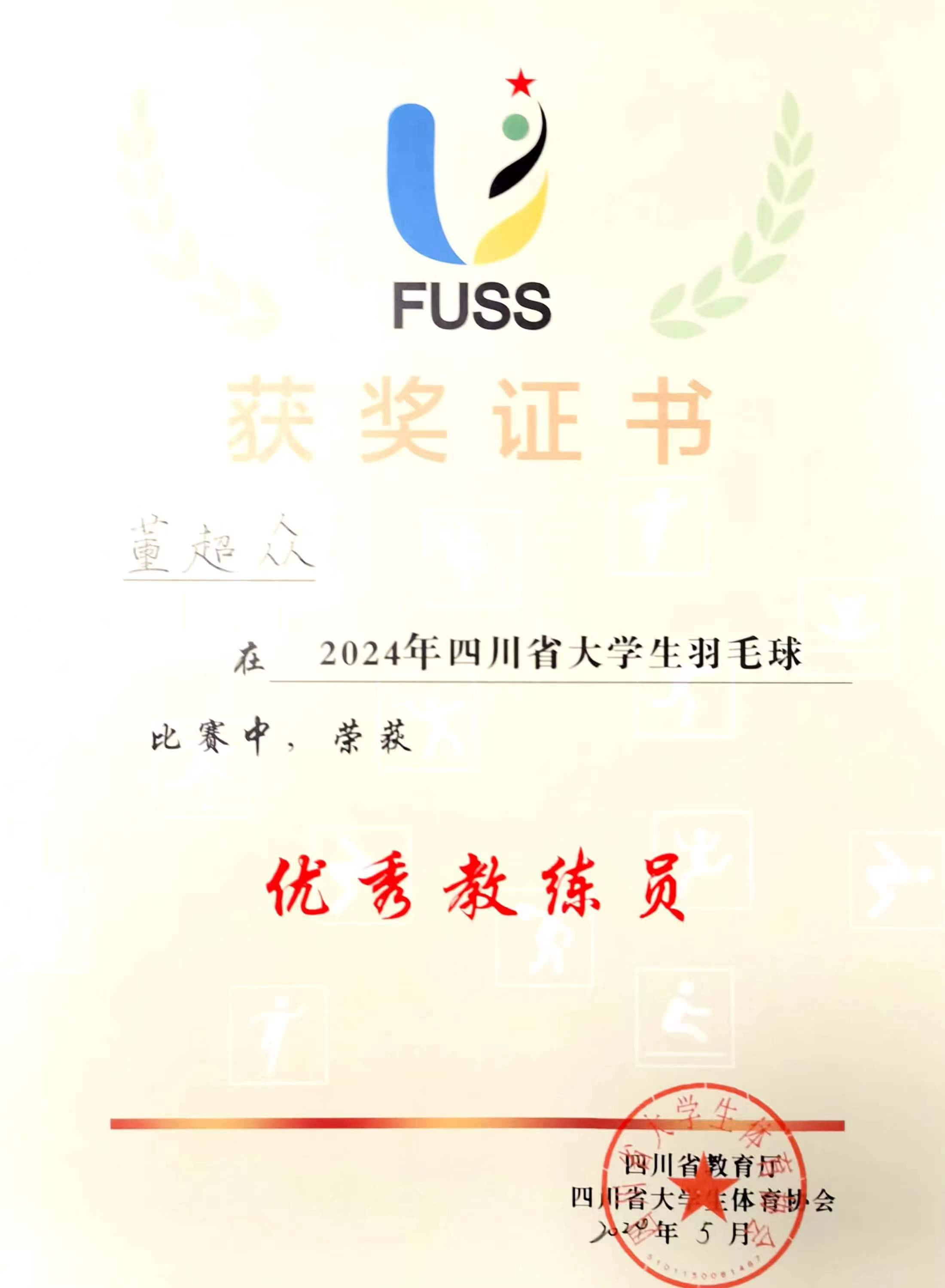 同时董超众老师被评为“优秀教练员”,翁辰、蒲开磊被评为“优秀运动员”。
