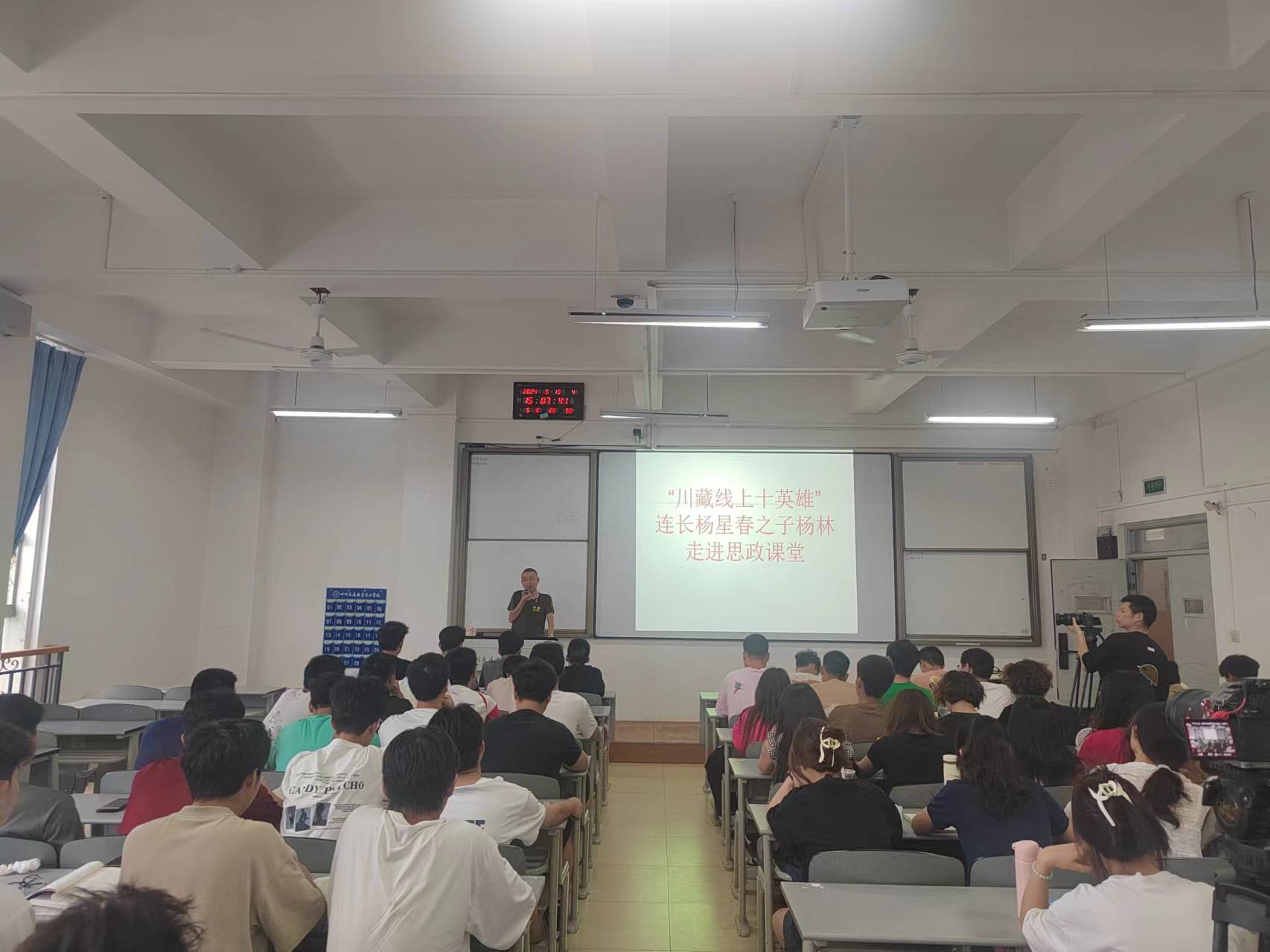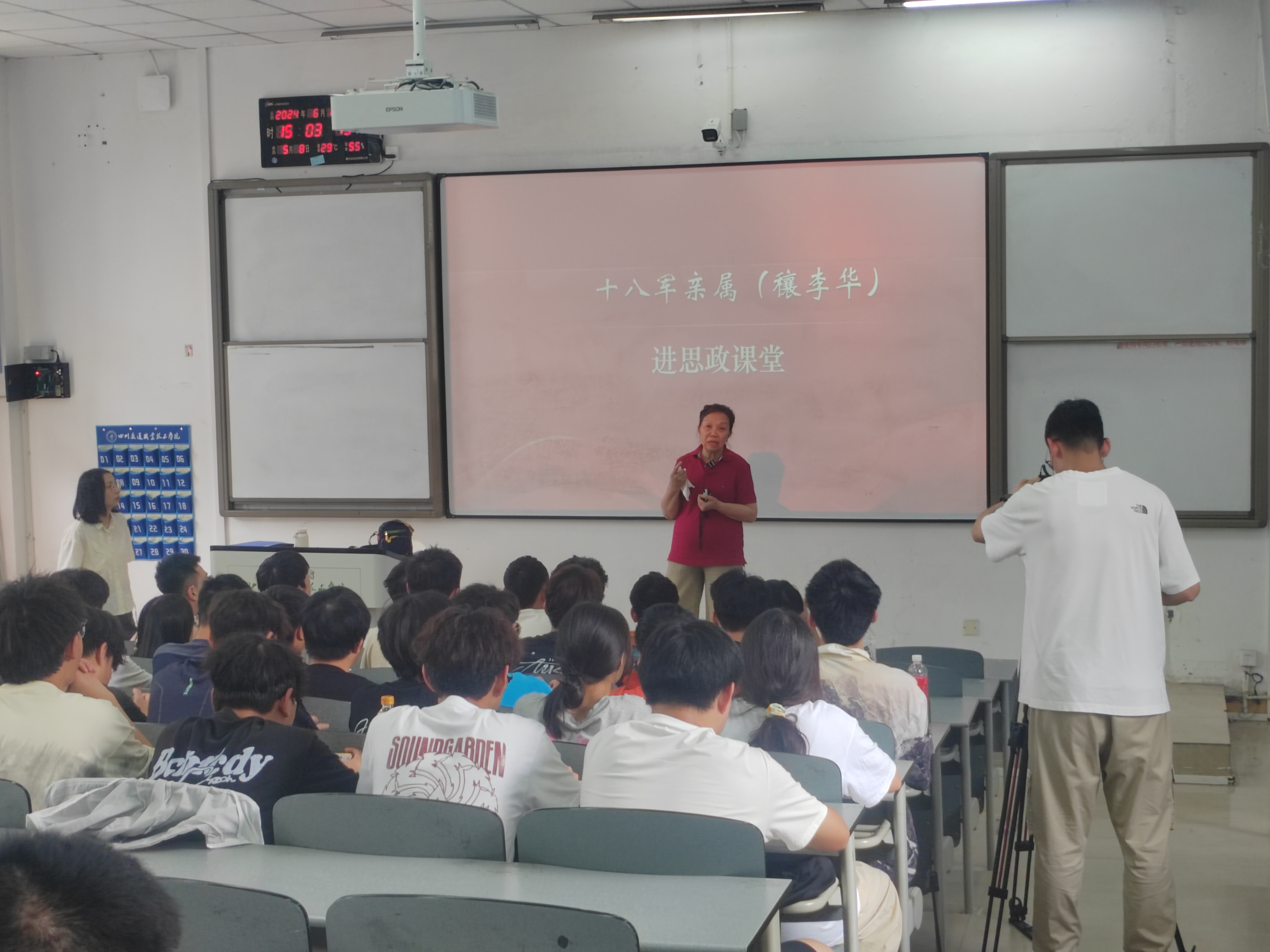 6月13日下午,十八军军长张国华之子张小军、十八军政委谭冠三之子谭戎生、康藏公路修建司令部政委穰明德之女穰李华、“川藏线上十英雄”连长杨星春之子杨林四人来到学院,走进思政课堂,为同学们带来了一堂生动的思政课。