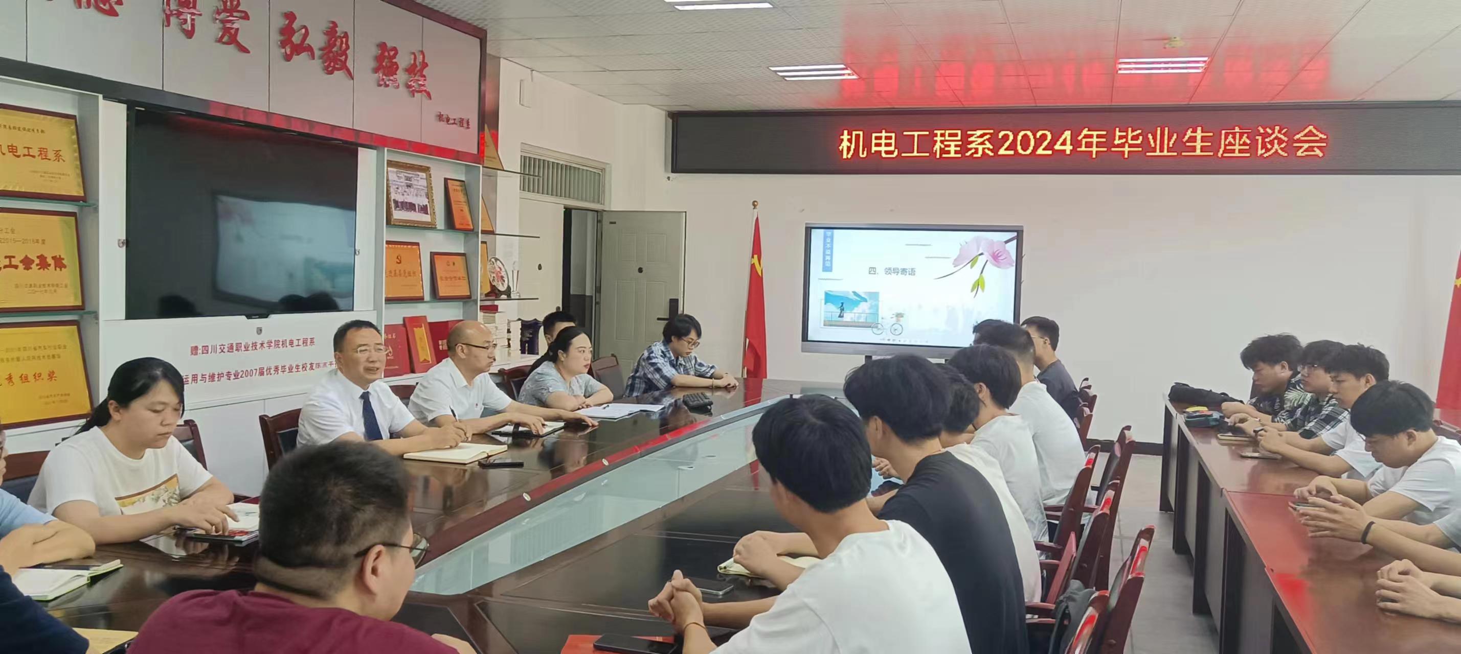 7月1日上午,机电工程系在践行楼302会议室举行了2024届毕业生座谈会。全体系班子成员和来自2024届各专业的30余名毕业生代表参加了座谈会,座谈会由系团总支书记唐佳主持。旨在通过座谈会的形式为即将踏入社会的毕业生们提供一个分享在校3年学习心得机会,征求毕业生对专业课程设置、课堂教学、实习实训和教育管理的意见建议,为下一步的教育教学改革提供参考。