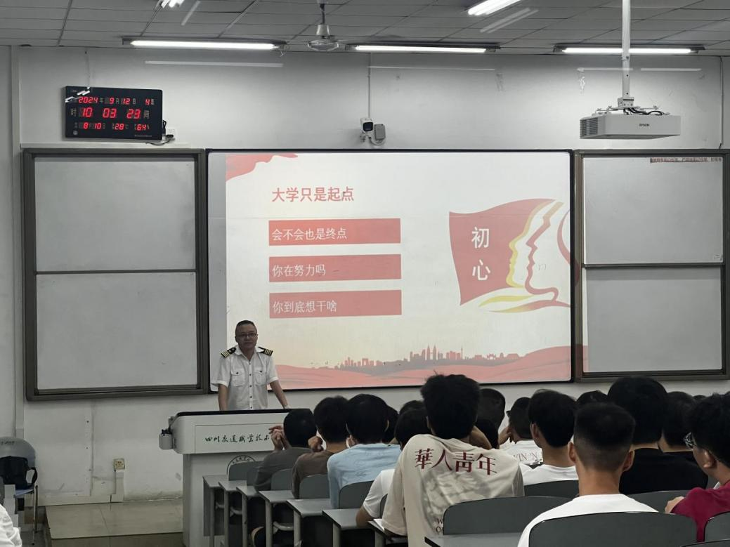 9月12日上午,航运工程系2024级新生开学典礼在劝学楼1115举行。系班子成员、教研室主任、新生辅导员、培训中心干事、教学干事、学生干事、教工及学生党支部书记、教师代表以及2024级全体新生共同参加,典礼由系党总支副书记郭镭镭主持。
