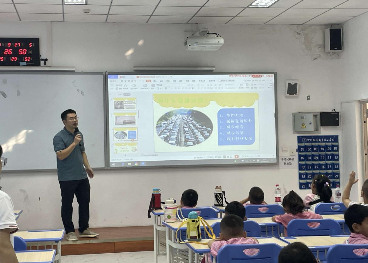 轨道系的唐杰老师向小朋友们介绍了城市轨道交通的发展历史、城市轨道交通乘坐安全事项等,让小朋友们对城市轨道交通有了基础的认识。