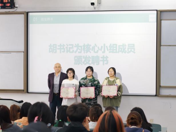 艺术与设计系党总支书记胡其良、党总支副书记谭静、团总支代理书记陈韵依次为核心小组、团总支部门部长和学生会部门部长分别颁发了聘书,充分肯定了全体成员的辛苦付出和突出表现,也衷心祝愿全体成员在今后的学习和工作中大展拳脚,再创辉煌。