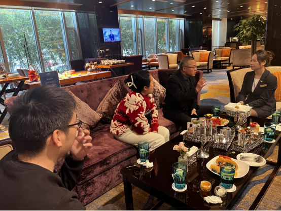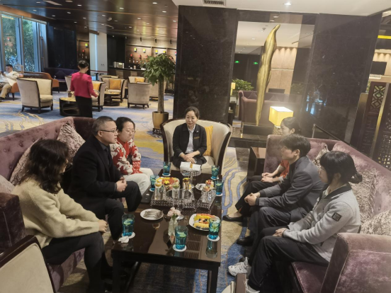 11月12日上午10点,航运工程系党总支副书记郭镭镭、邮轮教研室主任彭锦花、辅导员张明、学生干事刘怡一行四人赴成都高新豪生大酒店看望2025届国际邮轮乘务管理专业实习生。