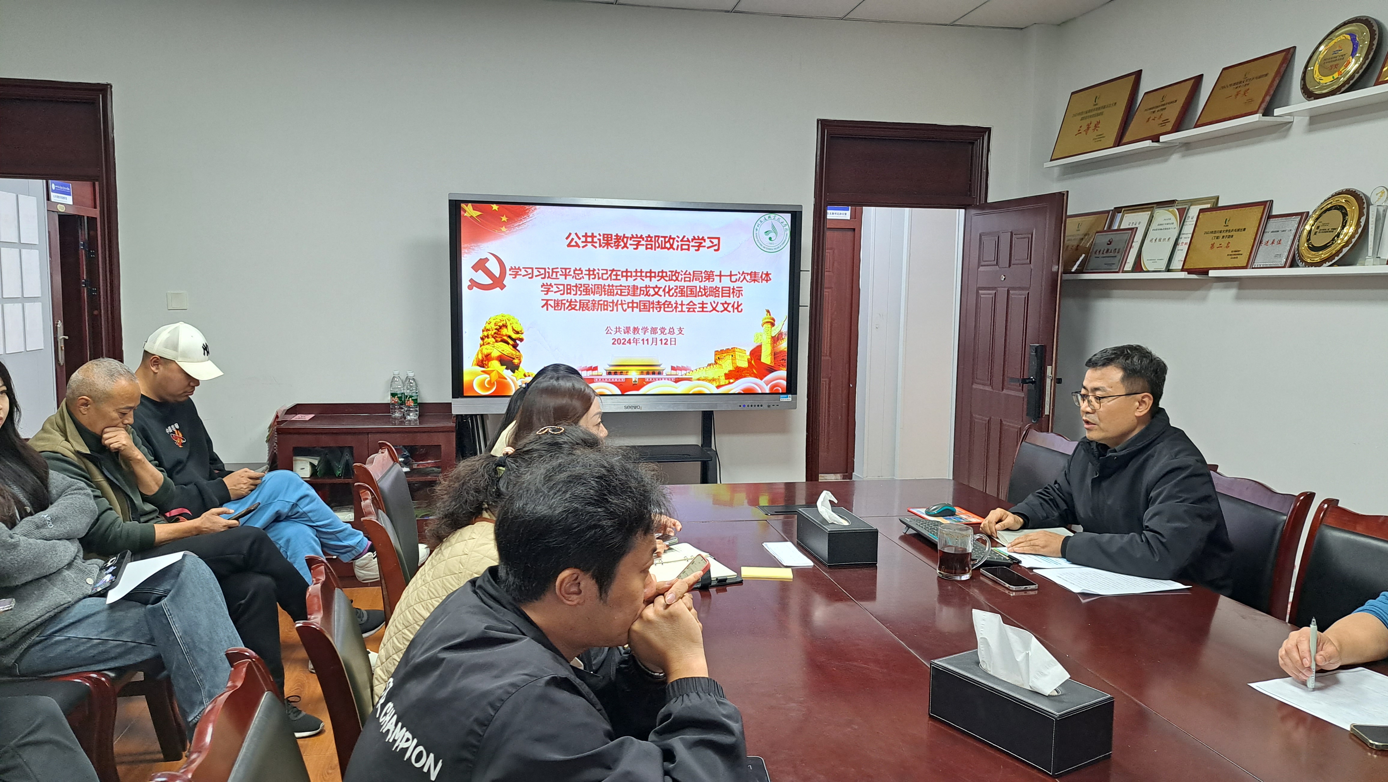 11月12日下午,公共课教学部召开政治学习会,会议由公共课教学部党总支书记陈清同志主持,部门全体教职工参加了会议。会议传达学习了习近平总书记在中共中央政治局第十七次集体学习时强调的锚定建成文化强国战略目标,不断发展新时代中国特色社会主义文化,以及习近平总书记在湖北、福建、安徽考察时的讲话精神。公共课教学部教职工在学习后纷纷表示,要以习近平新时代中国特色社会主义思想为指引,立足本职岗位努力奋斗,为实现中国式现代化贡献自己的力量,为学院的高质量发展添砖加瓦。