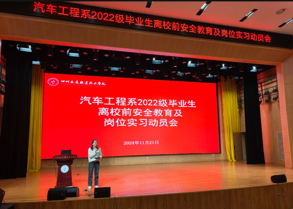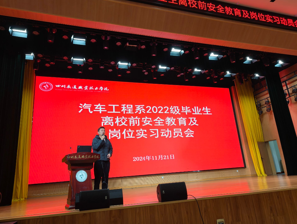 为了组织好毕业生离校前的各项工作,确保毕业生顺利离校、文明离校、安全离校,汽车工程系于11月21日晚在厚学楼报告厅组织召开了2025届毕业生离校前安全教育及岗位实习动员大会。汽车工程系领导班子成员、教学干事以及全体毕业班辅导员参加了此次会议。