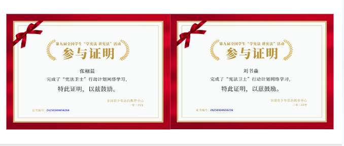 组织2023级、2024级全体学生参与“宪法卫士”行动计划,参与“宪法卫士”网络学习和答题。提高学生对宪法的理解和运用能力,加强法治意识。