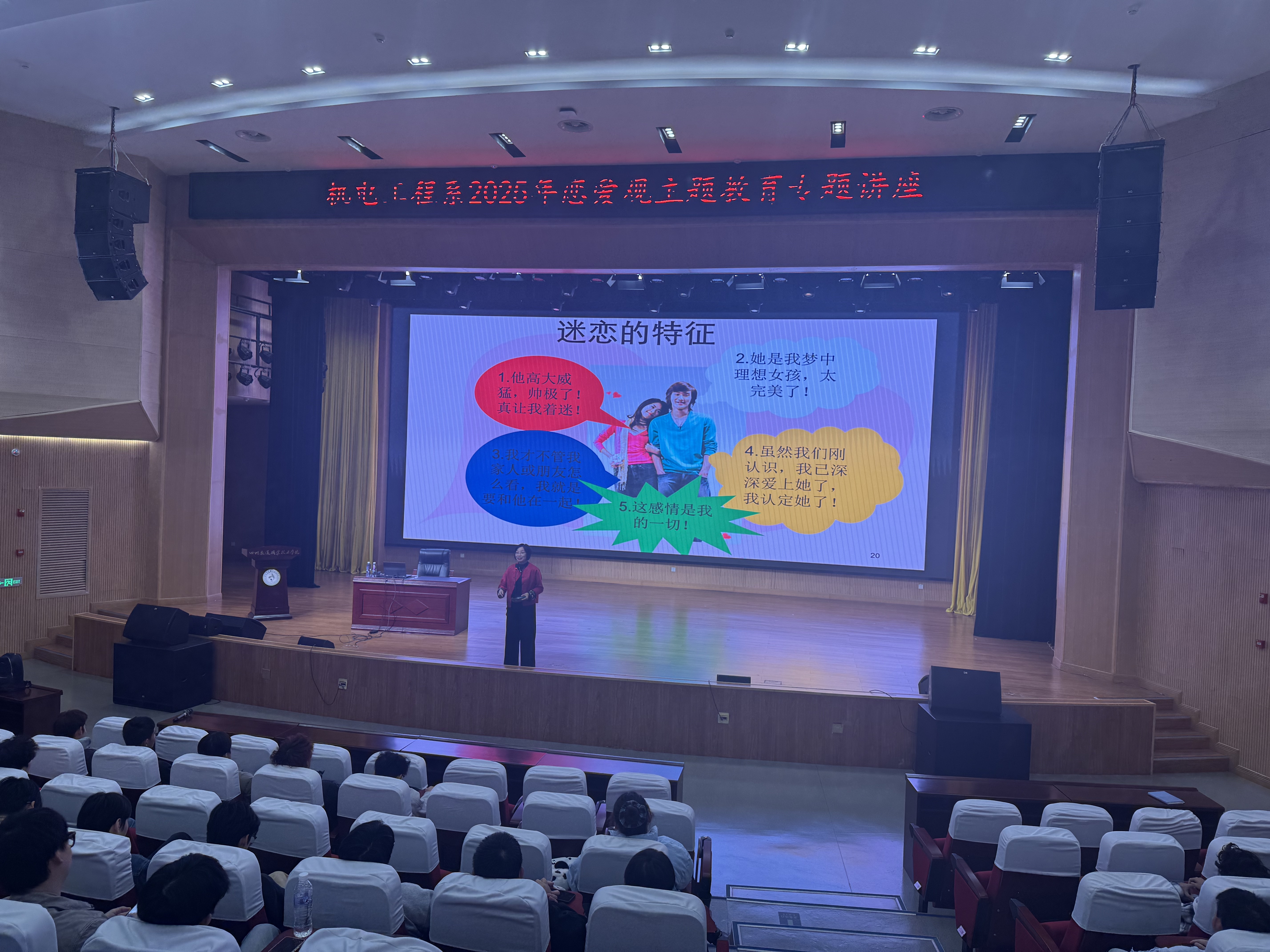 为引导学生树立科学健康的恋爱观,10月29日,机电工程系在厚学楼学术报告厅成功举办恋爱观主题教育专题讲座,全校400余名师生到场聆听。本次讲座特别邀请到成都工业学院程静教授担任主讲嘉宾,程静教授系四川性社会学与性教育研究中心主任、中国性学会性教育分会副主任委员、四川省性教育协会会长,在大学生情感教育与性教育领域拥有深厚学术造诣和丰富实践经验。