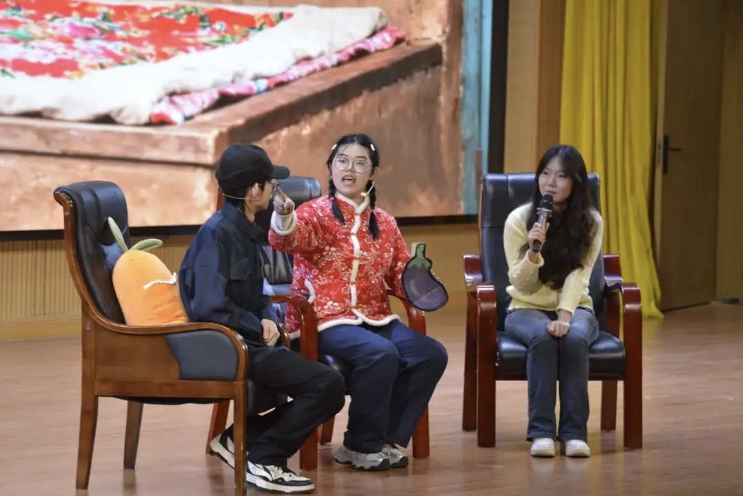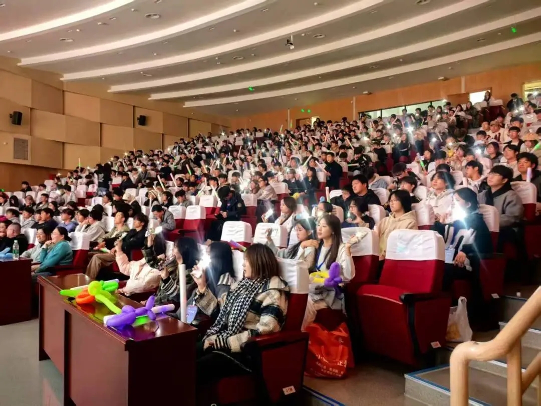 作为晚会压轴的“功成有我 青春筑梦”篇章,将个人成长与时代使命紧密相连。主题视频《见证青春 功成有我》通过奋斗者的鲜活面孔与重大工程成就的画面切换,瞬间点燃新生的责任感与使命感;辅导员戴莲菲与同学们自办自演的小丑角色的趣味互动,打破了师生间的距离感,传递出“师生同行 共筑梦想”的温情;最后,全场共同唱响《稻香》,熟悉的旋律在闪烁的荧光海中回荡,为晚会画上圆满句号,也象征着新生们温暖而坚定的大学新征程正式启航。