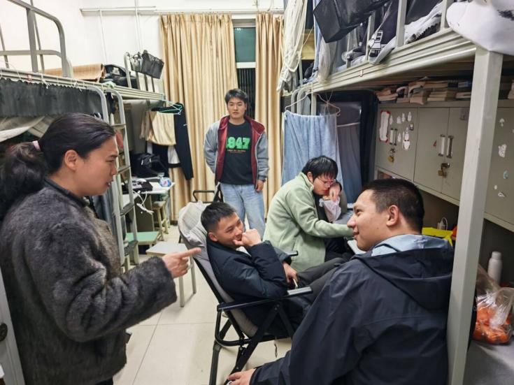 走访中,老师们关切询问学生假期收获、返校适应情况,倾听学业规划与生活需求;鼓励大一学生调整状态、夯实基础;叮嘱大二学生做好学业衔接、提升实践能力;为大三学生解答考证、就业疑问,鼓励把握春招机遇、兼顾实习与学业;并细致检查宿舍用电、消防及内务情况,排查安全隐患,叮嘱学生严守宿舍规定、增强安全意识。