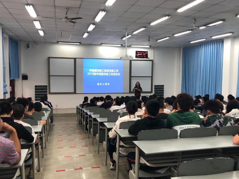 9月29日,在劝学楼1211举行了建筑工程系2019级中信国安建工班组班宣讲会。中信国安建工集团党群办主任童志远、人力资源部经理何乔、建筑工程系相关人员和2019级建筑专业全体学生参加了会议。