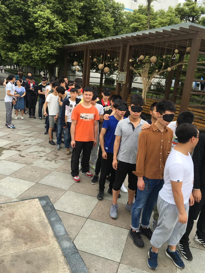 此次拓展活动分别由两系的团总支书记担任教练,两系学生会干部热情参与。现场设计了破冰、翻纸牌、似水流年、定向、旅程等五个素质拓展项目。破冰旨在加强团队的创建,通过设计队名、队歌、队标、口号,增加团队成员的相互了解;翻纸牌项目要求以最快的速度把纸牌按照“1-13”的顺序翻出,考验了团队成员的交流沟通能力和个人判断能力;似水流年则是通过U形管运球,锻炼了团队的协同作战能力;定向要求团队所有成员在规定的地点拍合照,这很好地培养了个人的竞速意识和团队配合意识。通过一系列比拼,各团队之间开展了心灵旅程项目,这个环节打破了竞争氛围,一方带上眼罩,另一方则搀扶对方前行。这培养了大家相互之间的信任意识和感恩意识。