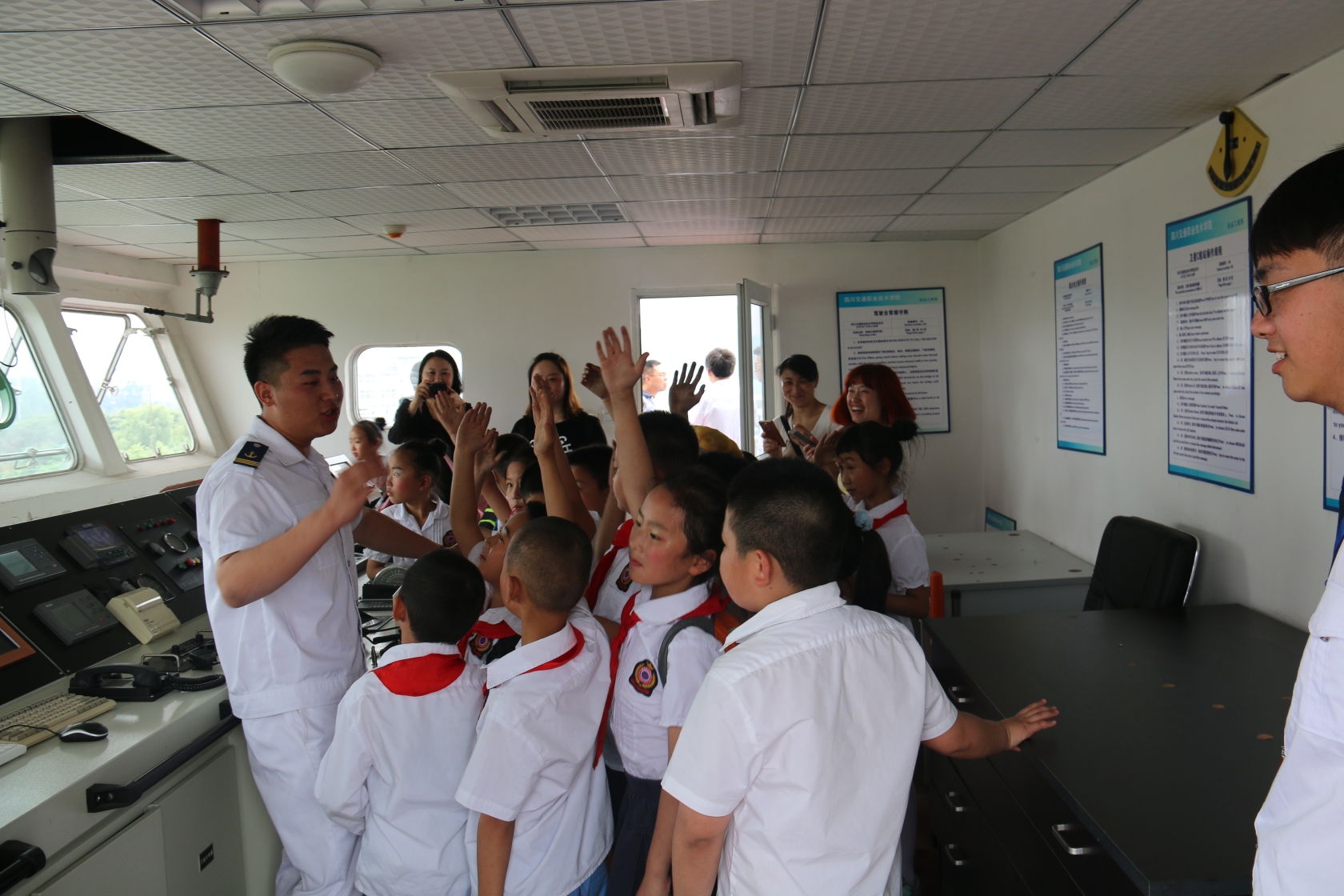 6月1日,航运工程系2017航海月暨建系十周年系列活动正式启动。其中,系列活动之一的“鱼凫号,零距离”开放日活动特邀到温江区实验学校的小朋友到校,参观航运工程系实习船“鱼凫号”。