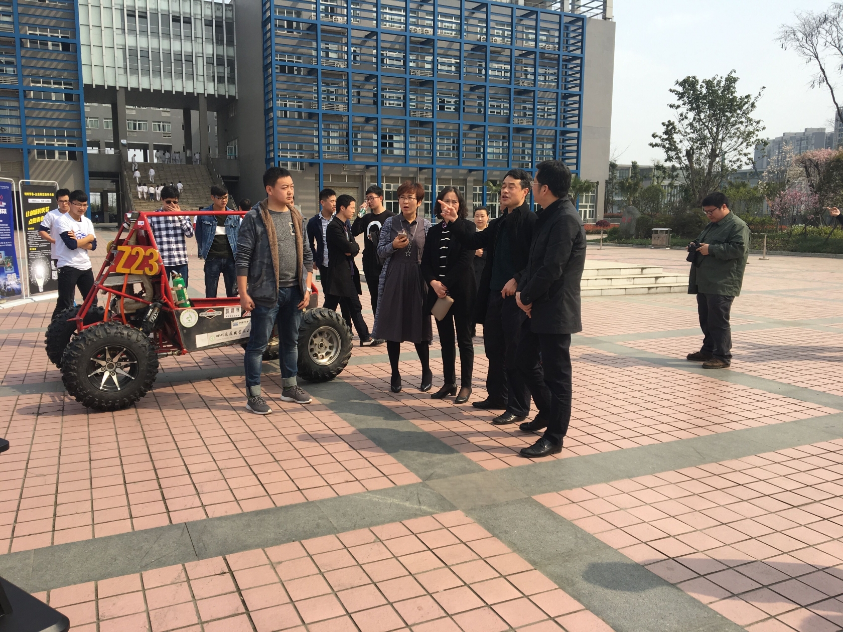 下午,成都工贸职业技术学院党委书记、副院长一行来到活动现场,听取了拓道者车队指导教师对”Z23”号巴哈赛车的介绍,了解巴哈运动在国内发展历程以及2015、2016年大学生巴哈大赛的举办情况。成都工贸职业技术学院领导对我院拓道者车队“求真务实,勇攀高峰”的精神表示了高度的赞扬,对拓道者车队真诚的交流、热情的态度表示了感谢。会后,成都工贸职业技术学院领导观看了由拓道者车队队员带来的动态展示项目。