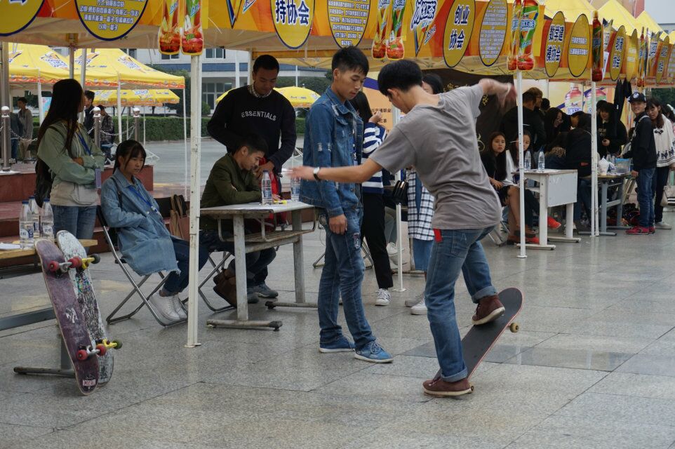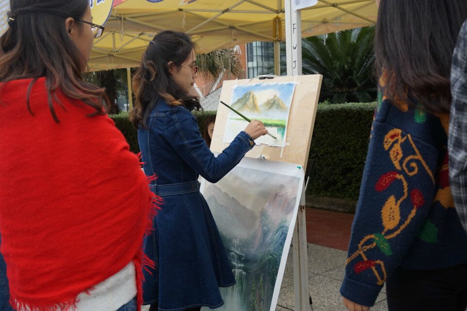 在招新现场,各社团为了吸引到更多的关注,纷纷拿出自己最具亮点的道具或证书或现场展示,以彰显自己社团的特色。书画社即兴挥毫,轮滑社高难度表演,棋牌社现场对弈,吉他社现场演奏等节目,充分展现出交院丰富的社团文化。