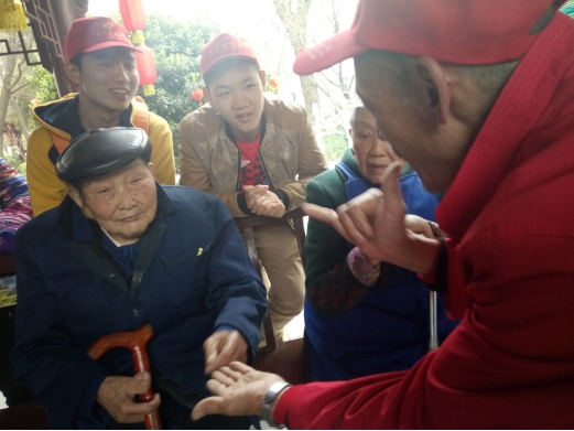 本次活动有17名同学参加,同学们在敬老院给老人们唱革命歌曲、民谣和戏曲,陪老人聊天聆听他们讲述自己的故事,帮助老人叠被子和与亲人联系等,让老人们度过一个愉快的下午。敬老院的老人们对志愿者的到来非常高兴,一位抗美援朝军人脱帽向志愿者致敬,还有一位老人感动得流下了热泪,让志愿者们感受到老年人渴望关爱,认识到敬老、爱老活动的意义。
