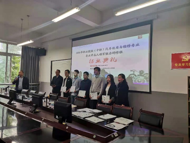 会议先后总结了当前职业教育面临的问题及未来发展方向,表达了对学员未来发展的期望与祝愿。最后,汽车工程系党总支书记凌晓萍、主任袁杰为优秀学员颁发结业证书。