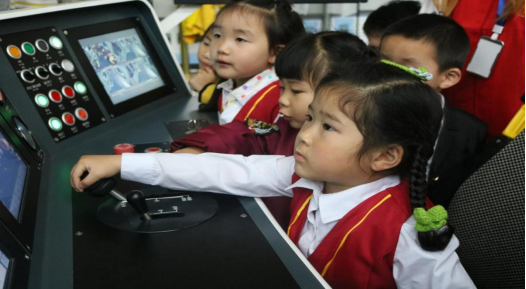 在轨道系老师和志愿者的引导下,小朋友们观看到了成都地铁线路图,了解了地铁线路的架构与走向。志愿者们带领小朋友们认识了车门和受电弓,讲解了基本工具的操作,信号旗、信号灯各种颜色代表含义。小朋友们身着列车驾驶员制服,体验了地铁的模拟驾驶和城轨信号控制操作。