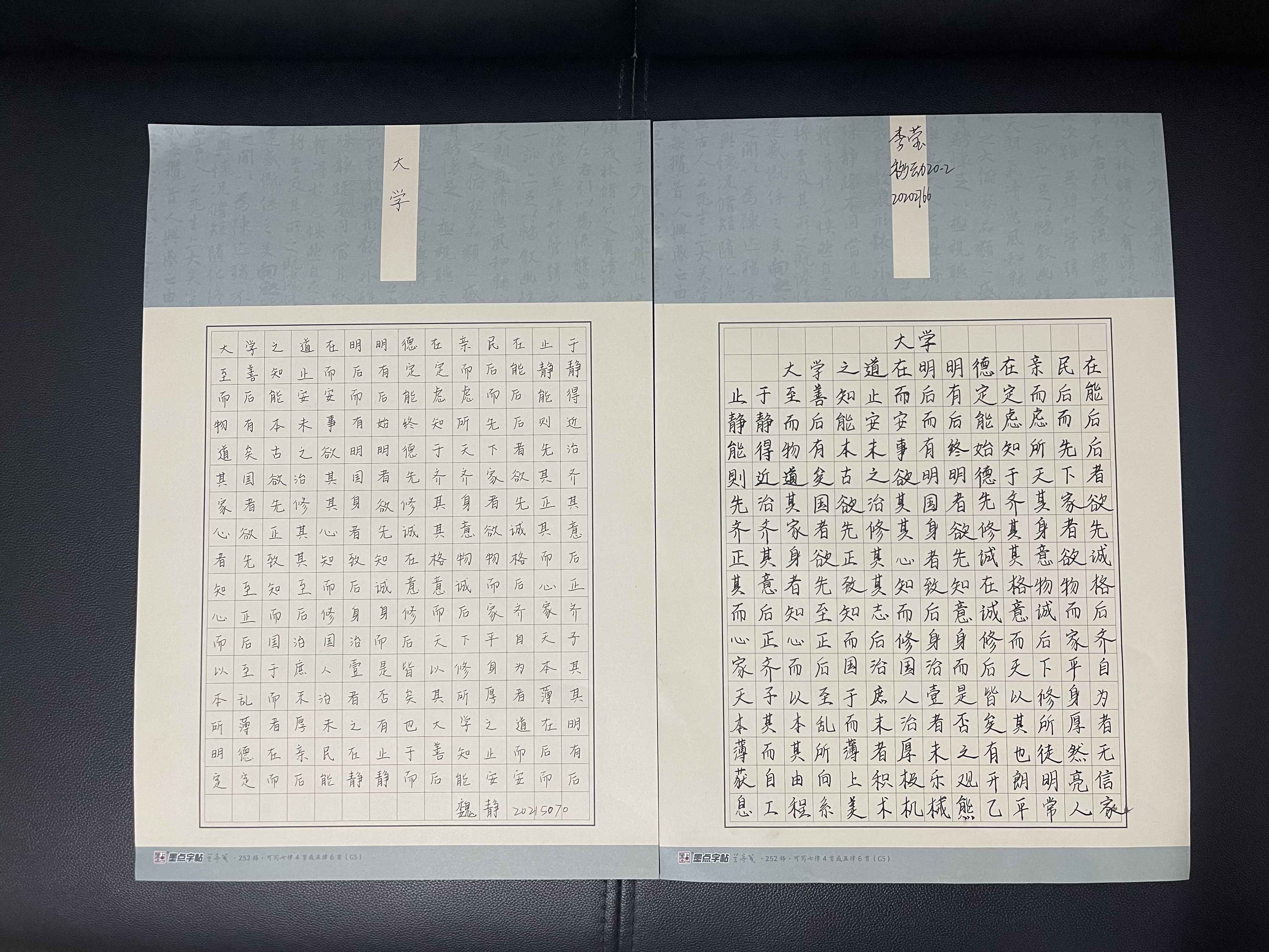 本次比赛依照惯例,采取线下笔试方式进行,包括三个部分:第一部分听写15个词语,主要考察选手听、写的能力和提笔忘字的情况;第二部分是国家通用语言普通话、规范汉字方面的知识以及书法文化常识题,共计30个选择题;第三部分是在组委会提供的书法纸上硬笔书写国学经典《大学》,主要考察参赛选手规范汉字书写能力。整个比赛同学们积极参与,紧张答题,认真书写,参赛选手涵盖各年级,新生参赛比例较往年有大幅增加。为了保证比赛的公平公正,赛后评委采取规范化的流水评阅和复核,最终张顺莲、周美均、江圆圆、金琪、白冬羽5名同学共享一等奖的殊荣,其中2020级张顺莲同学以87.5分的成绩位居第一名;其余各系共计42名同学分别获得二、三等奖。
