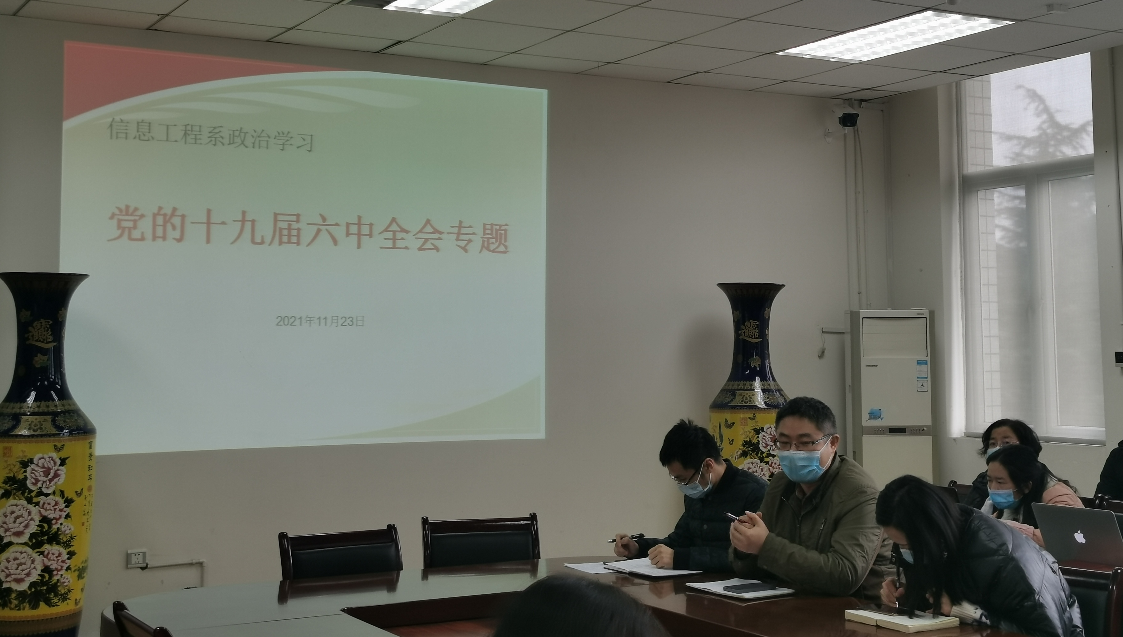 11月23日下午,信息工程系召开政治学习会,组织学习党的十九届六中全会精神,系党总支书记夏莉娜带领全体教职工学习了党的十九届六中全会精神,全系51名教职工参加了政治学习会。