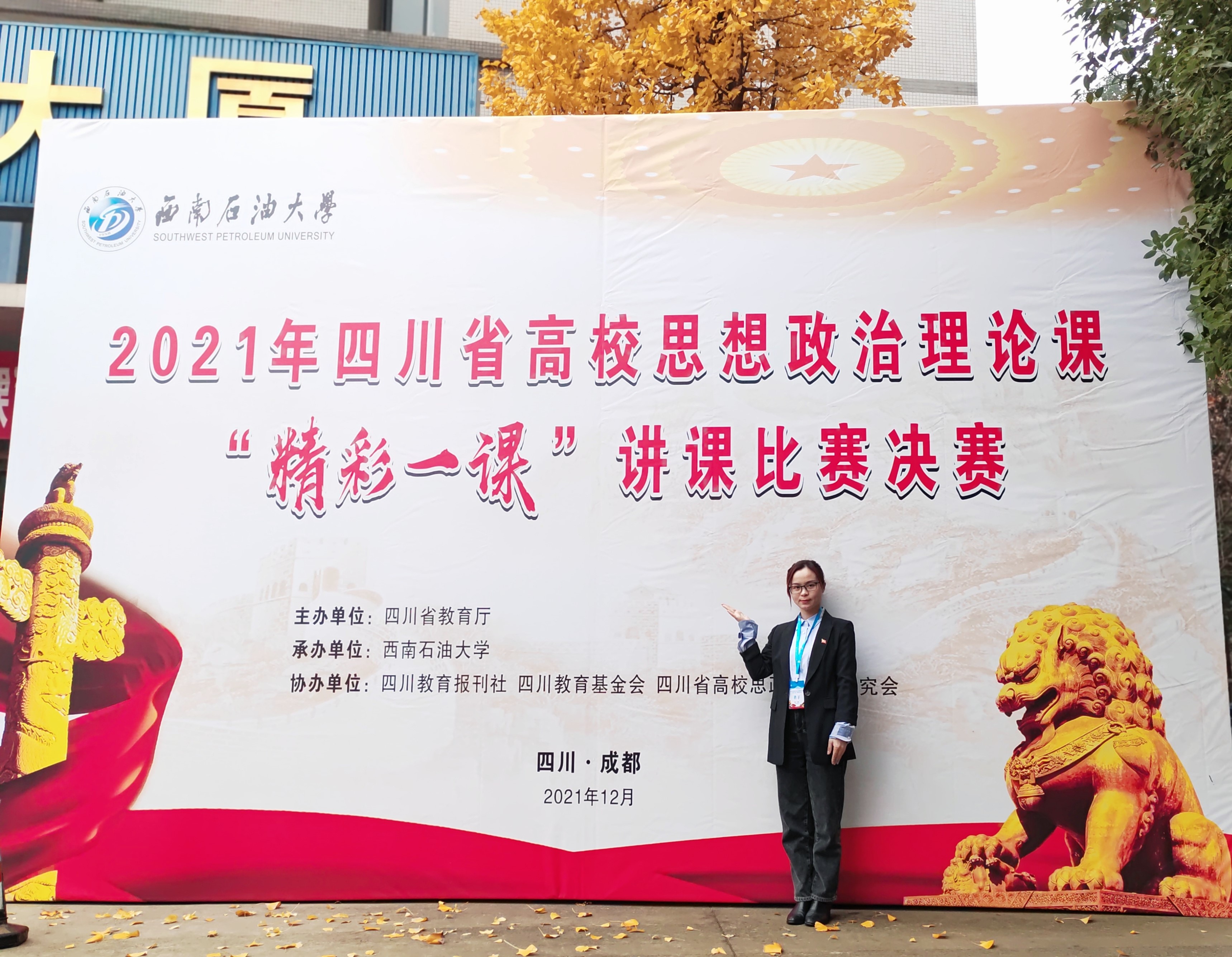 为深入学习贯彻习近平总书记在学校思想政治理论课教师座谈会上的重要讲话和“七一”重要讲话精神,学习贯彻党的十九届六中全会精神和省委十一届十次全会精神,进一步发挥高校思想政治理论课在立德树人中的关键课程作用,充分展示各高校思政课创优行动、钻研教学。12月10日,由四川省委教育工委、省教育厅主办,西南石油大学承办的2021年四川省高校思想政治理论课“精彩一课”讲课比赛在新都区举行。决赛中,我院许留锋、罗解两位老师分别获得《毛泽东思想和中国特色社会主义理论体系概论》(高职高专组)二等奖、《思想道德与法治》(高职高专组)二等奖。