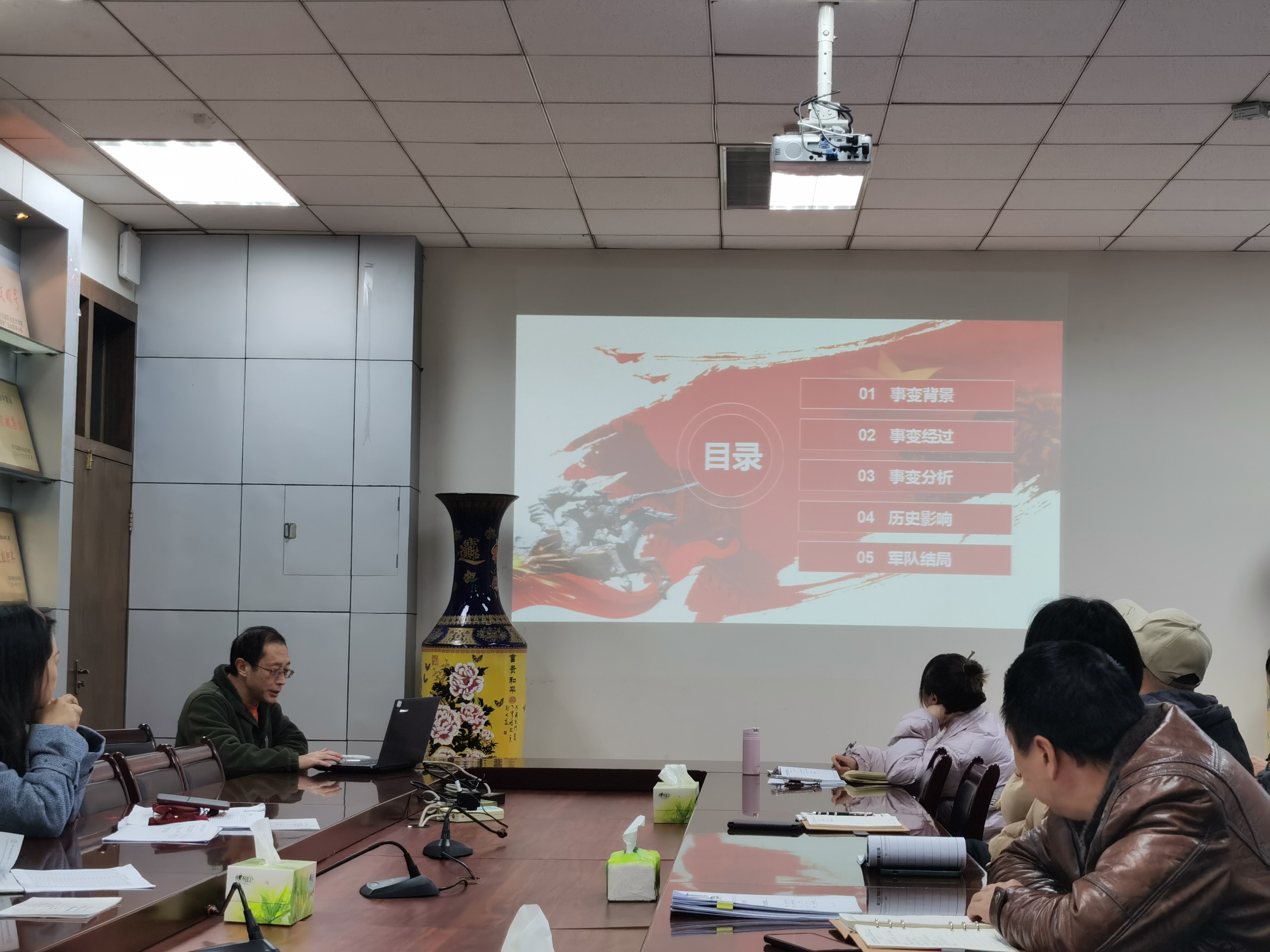 按照学习计划安排,教工党支部陈科美同志讲述了《西安事变》,他从事变的历史背景、事变经过、事变分析和造成的历史影响及军队的结局等方面为大家作了详细的讲解,大家认真聆听,思想专注,思绪又一次被带入那些战火纷飞的岁月。学生党支部曾品佳同志为大家讲述了《十九届五中全会》,她从十九届五中全会的概况介绍、回顾了“十三五”规划成就、对“十四五”规划的重要意义和五中全会如何书写大变局下的“中国故事”等方面讲述了十九届五中全会,并以此激发师生认真深入学习贯彻十九届六中全会精神。