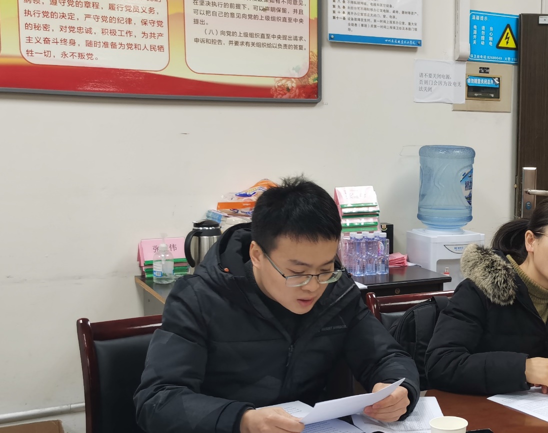 12月28日,信息工程系在信息楼207会议室召开党员大会,本次党员大会主要议程为讨论吸收28名同志为中共预备党员、“我讲党史半小时”和集中观看《四川省交通运输厅党史学习教育暨贯彻党的十九届六中全会精神宣讲》视频。出席会议的有信息工程系党总支书记夏莉娜、党总支副书记常洁、团总支书记巫群珍、信息工程系教工党支部书记遆佳、党员教职工以及28名发展对象。会议由学生党支部书记唐国强主持。