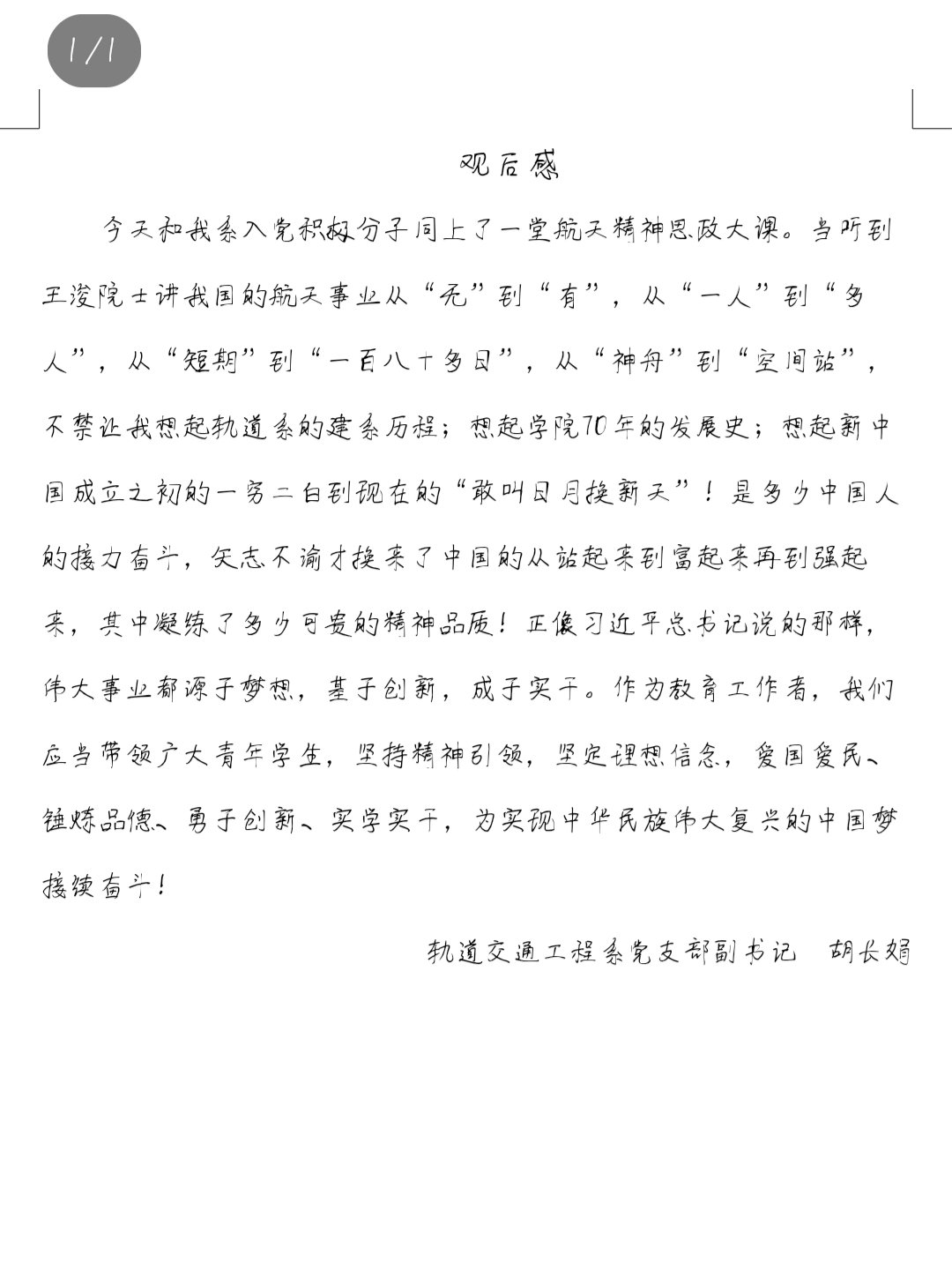 为传承航天精神,激发青少年不断追寻“科学梦”、实现“航天梦”的热情。4月23日下午14:00,轨道交通工程系组织大一、大二17个班,七百余人在线上观看了航天精神思政大课。并组织全系入党积极分子在励学楼2117教室进行了集中观看,轨道交通工程系党总支副书记胡长娟参与了此次思政大课并和同学们展开了互动讨论。