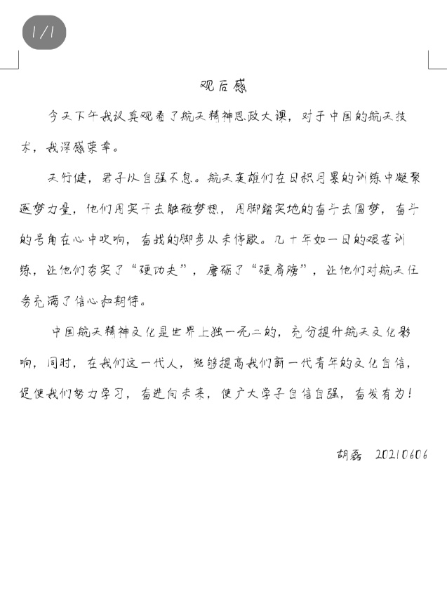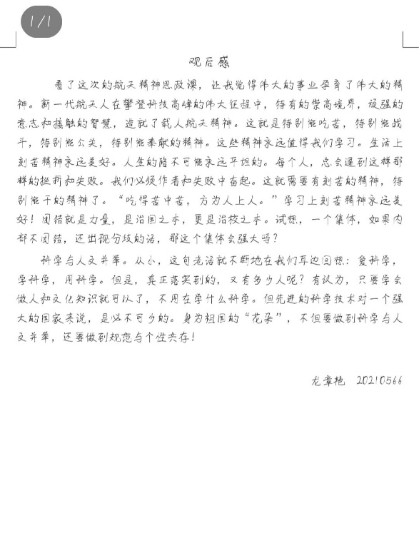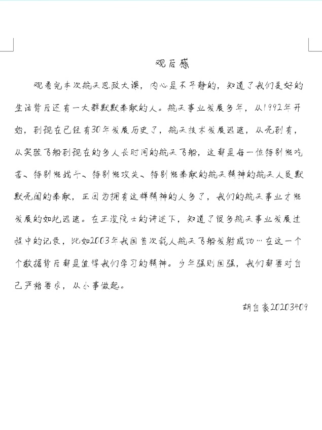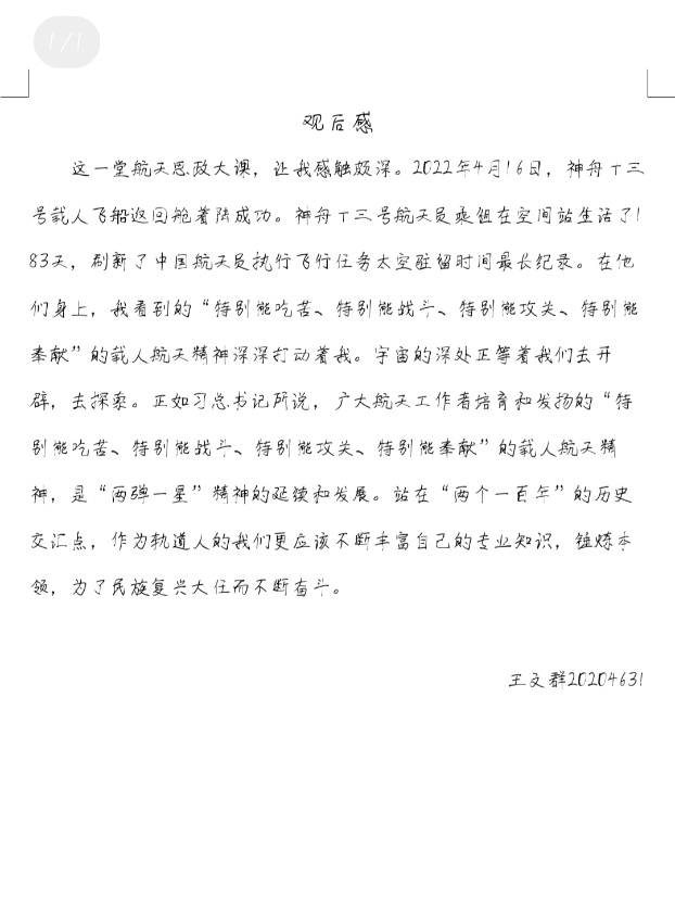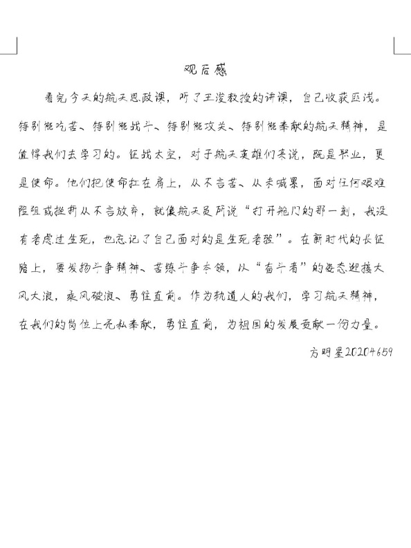 课后,同学们通过线上、线下各种形式展开了交流讨论,共发表了百余份观后感。大家纷纷表示,作为新时代的大学生,将坚持精神引领、坚定理想信念,将个人的青春和奋斗融入中华民族伟大复兴的中国梦中!