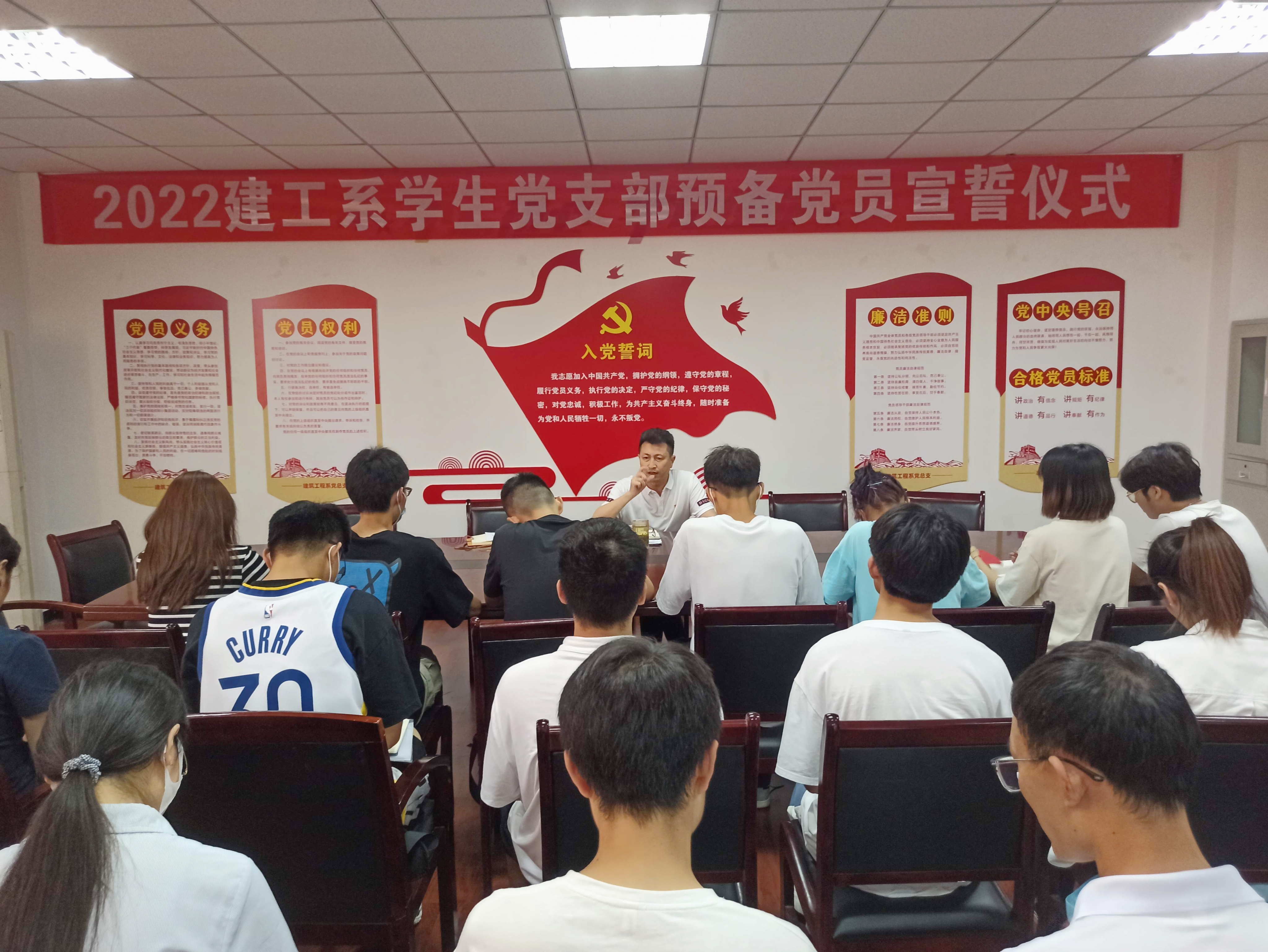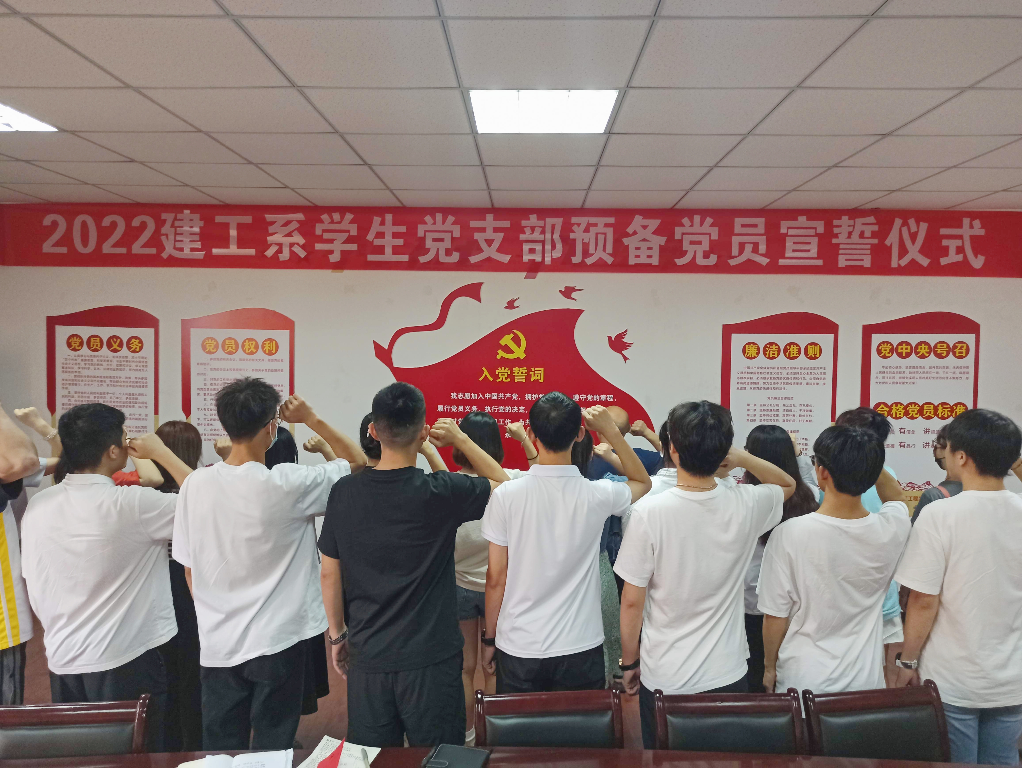 6月8日,建筑工程系学生党支部在党员活动室召开党员大会,举行预备党员入党宣誓仪式,27名党员和预备党员参会。