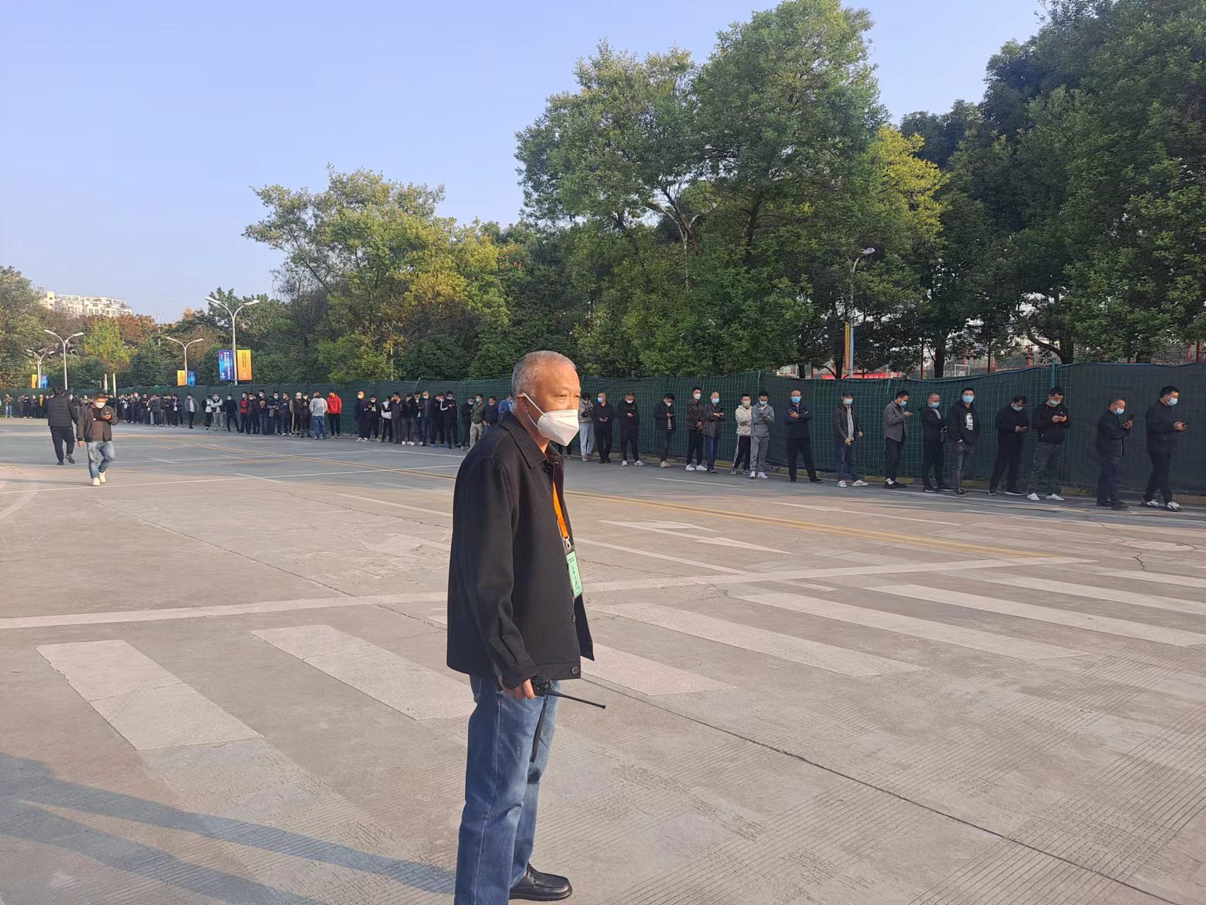 严格落实疫情防控,细化考试服务双线嵌合。按照疫情要防住,经济要发展,发展要安全的要求,结合本单位工作实际,交苑公司全面统筹推进考试服务工作。一是专人负责指挥车辆停放和疏通,从学院南大门开始到交苑公司训练场,全程安排专门的工作人员对外来考试人员车辆停放进行指挥指引。二是安排专人全程负责环境消杀,卫生清洁,保持干净的考试环境。三是专人负责现场秩序,工作人员全程身穿防护服,督导并要求考试人员有序排队,佩戴好口罩,排队间隔一米,爱护环境卫生,保持良好的公共秩序。四是专人严格把关查验考试人员24小时核酸和行程卡,进行体温检测和考试登记,登记完后领取候考牌,再由专人负责引导考试人员进入考场,做到车辆停放有序、考试人员排队有序。