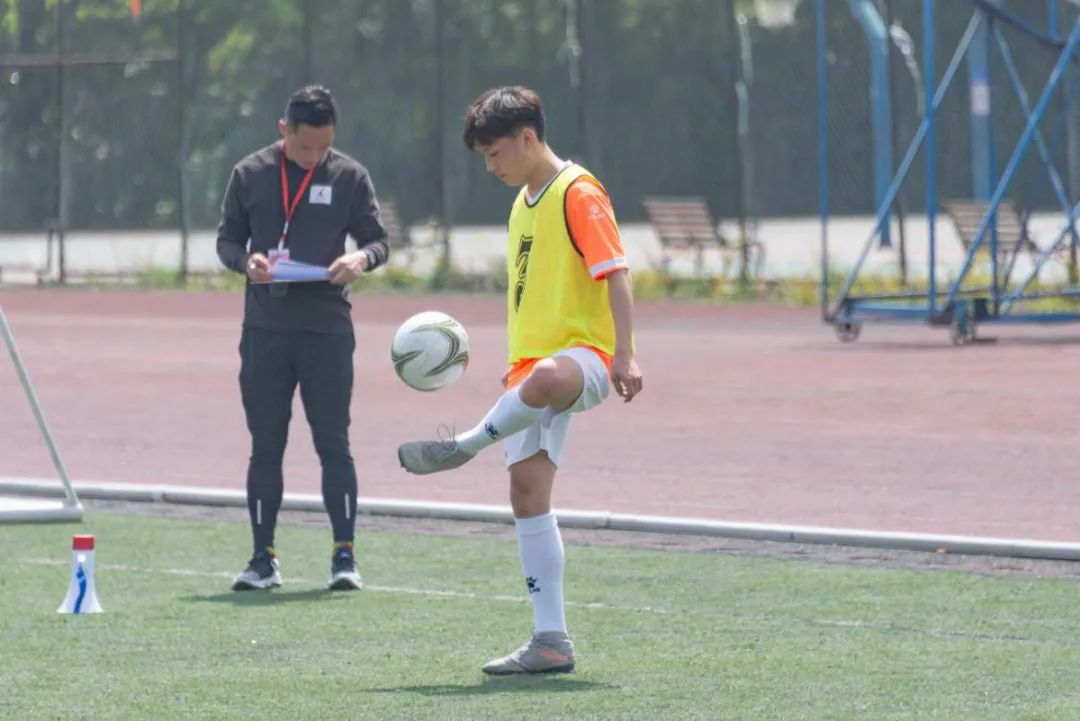 篮球考试结束后,一旁的足球场上,考试还在如火如荼的进行着。在烈阳高照的足球场上,身着荧光绿背心的考生们,仔细的听着监考老师的指令,用所学的技术把球踢进指定的得分圈中。“一球一号圈,二球二号圈.....”在充分的热身后,考生们排成一列,一个一个的对圈踢球,监考老师则在场认真的做着记录。当足球落在地上扬起灰尘的一瞬间,他们高超的球技也得到具现。