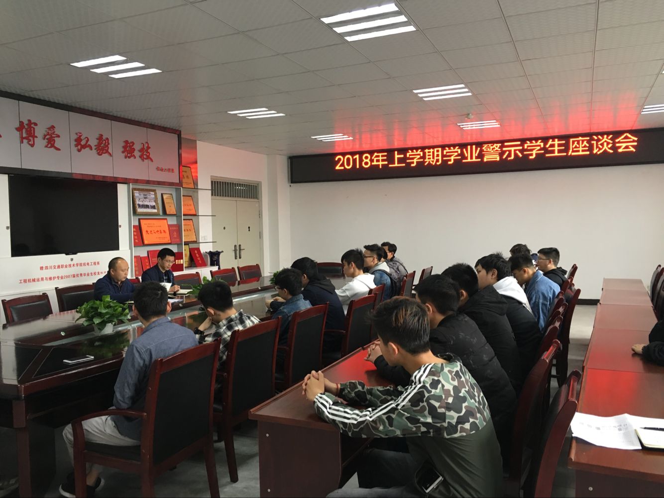 3月23日,机电工程系在践行楼B302会议室召开了2018年上学期学业警示学生座谈会,旨在解决学业困难学生思想和学习等方面的困惑,帮助树立学习目标和信心,以期顺利完成学业。 会议就课程置换、重修选课等做了详细...