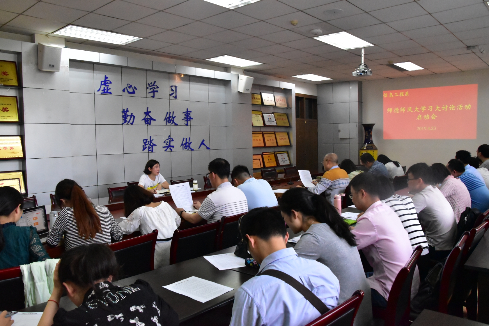 4月23日,信息工程系召开了师德师风大学习大讨论活动的动员会。 会议传达了近期学院对高校开展师德师风活动的重视情况,引领全系教职工在将来的工作中务必把师德师风放在重要位置;组织教师们学习了《新时代高校...